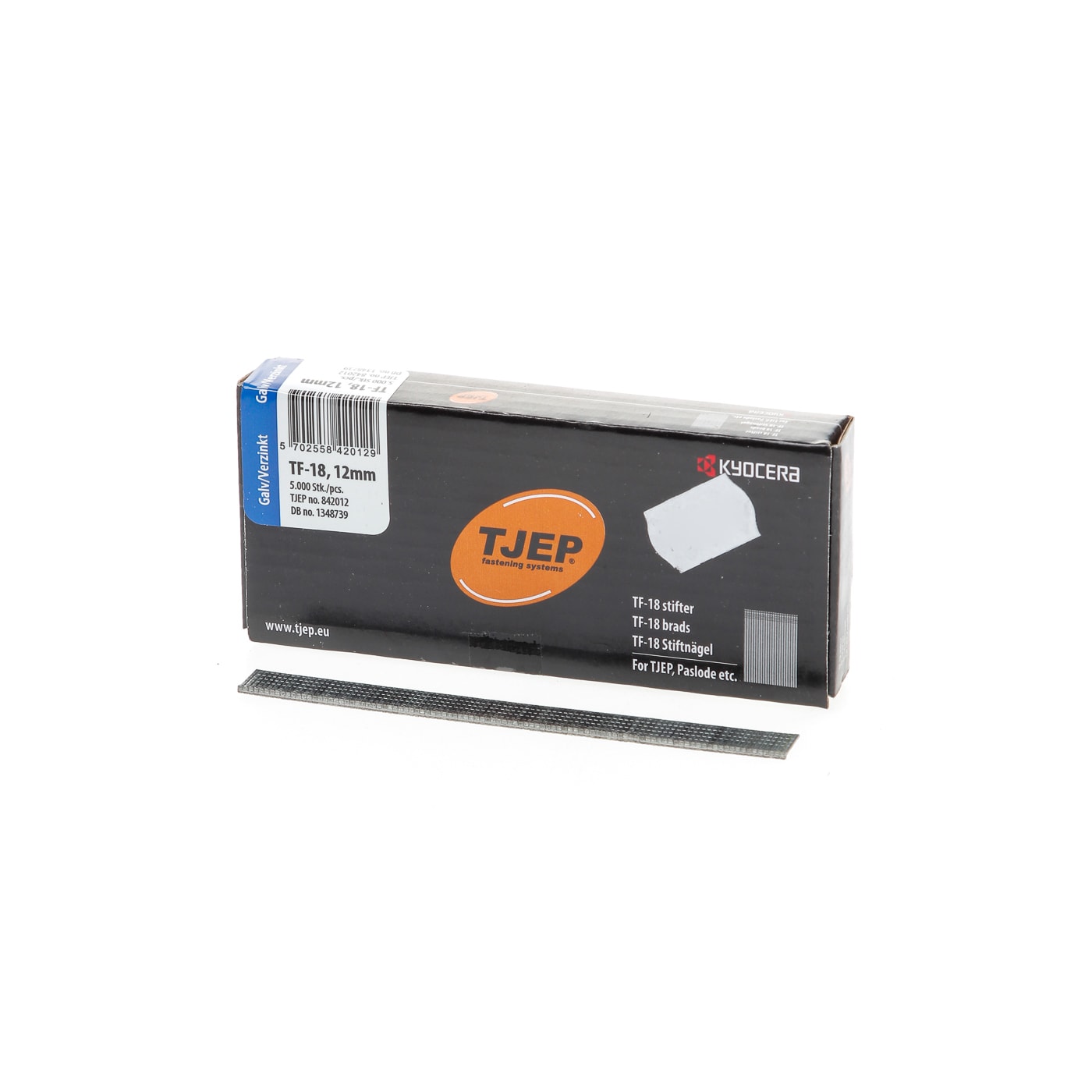 https://www.connectfastening.nl/productwijzer/Verzinkt.Hoek: 0°Diameter: 1,2mmLengte: 12mmPast in:Tjep TF-18/30 E brad nailerTjep TF-18/50 GAS 3G brad nailerTjep TF-18/45 brad nailerPaslode Impulse IM 50 F18Paslode Impulse IM 200 F18Paslode FN 1835Paslode FN 1850Paslode FN S 1850 KOMBISenco SCP20Senco FP18Senco CF25Dewalt D51238KMax 255Max NF221/F-18