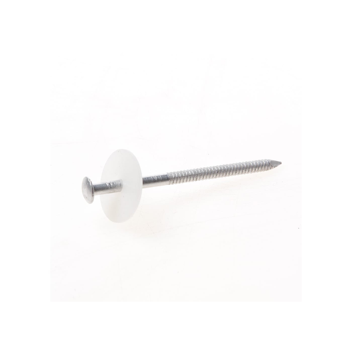 Aluminium, met gemonteerde kunststof ring. Voor de juiste nagellengte 30 mm bij de dikte van de isolatieplaat tellen.