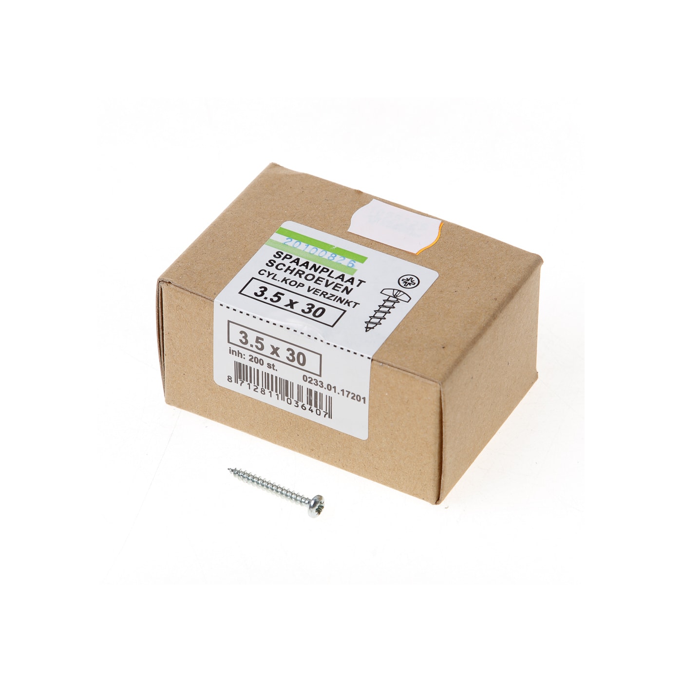 QZ Spaanplaatschroef cilinderkop verzinkt pozidriv 3.5x30mm (per 200 stuks)