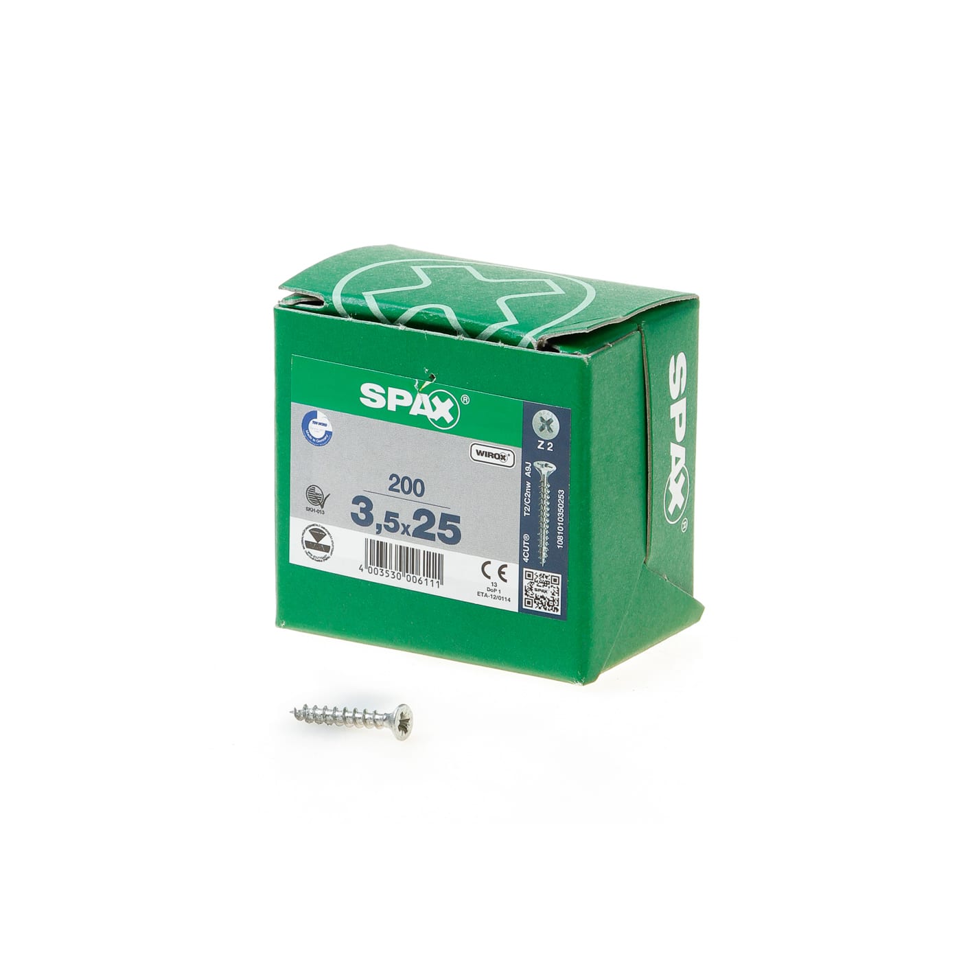 Spax Spaanplaatschroef platverzonken kop verzinkt pozidriv 3.5x25mm (per 200 stuks)
