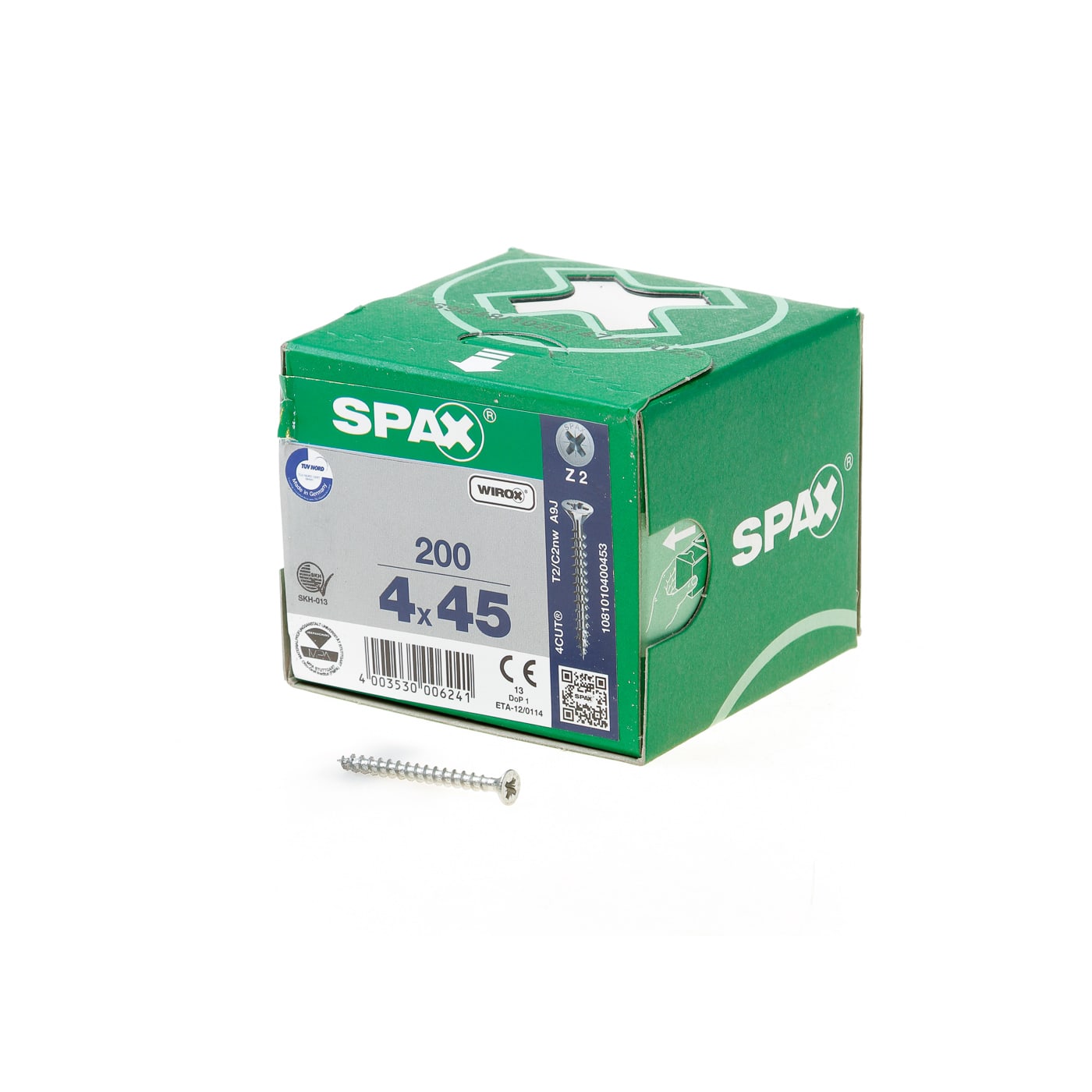 Spax Spaanplaatschroef platverzonken kop verzinkt pozidriv 4.0x45mm (per 200 stuks)