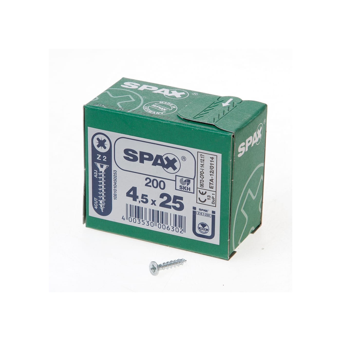 Spax Spaanplaatschroef platverzonken kop verzinkt pozidriv 4.5x25mm (per 200 stuks)
