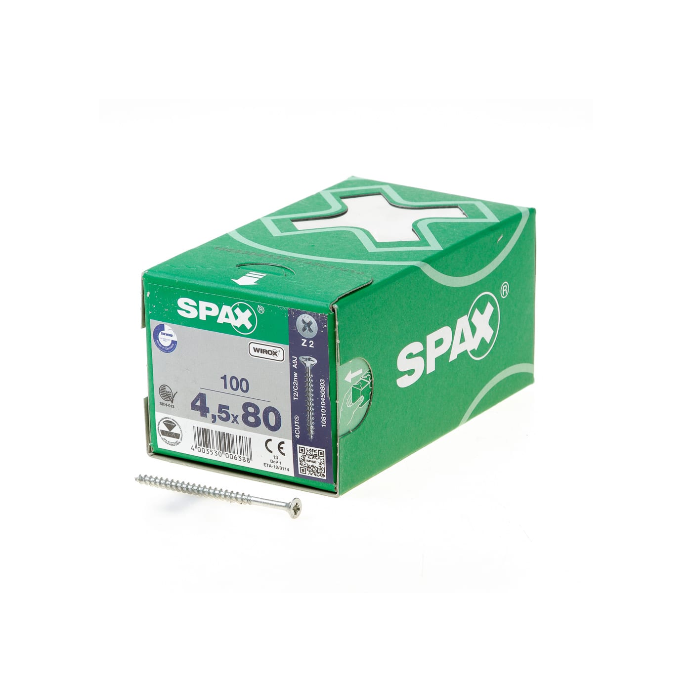 Spax Spaanplaatschroef platverzonken kop verzinkt pozidriv 4.5x80mm (per 100 stuks)
