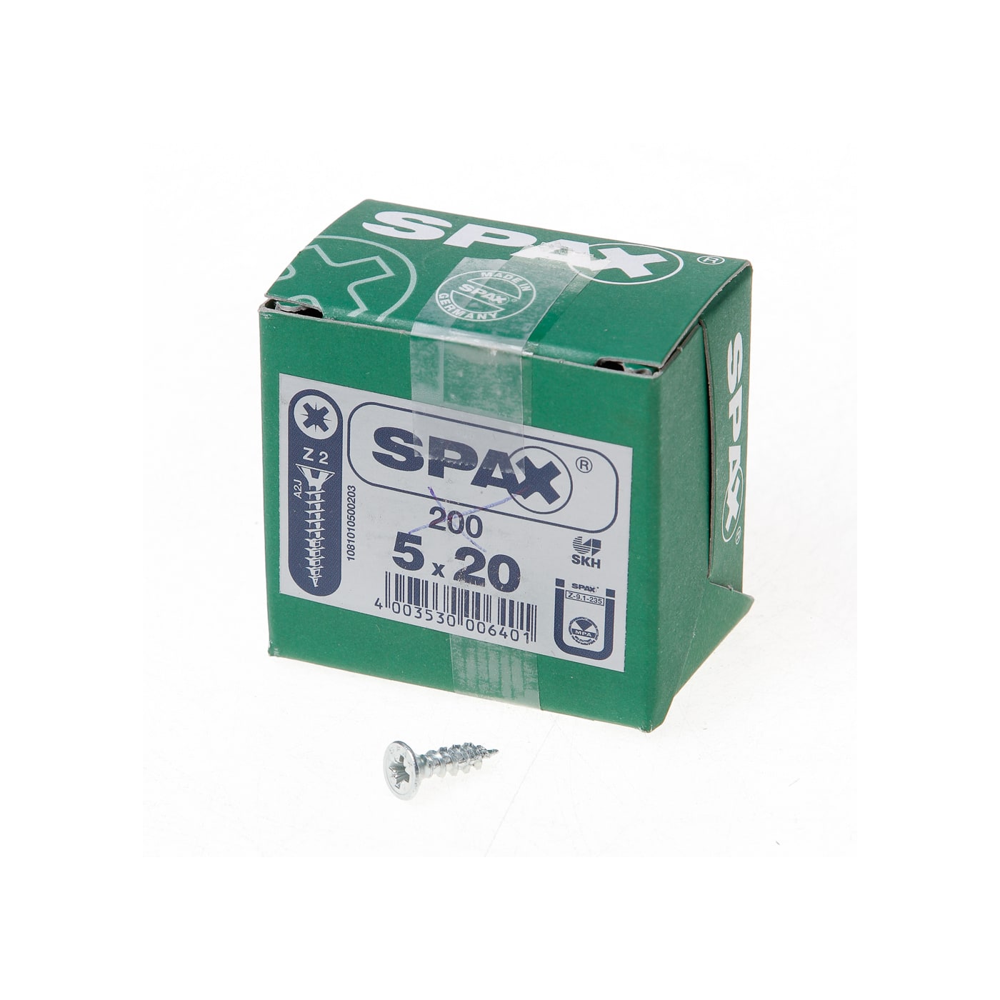 Spax Spaanplaatschroef platverzonken kop verzinkt pozidriv 5.0x20mm (per 200 stuks)