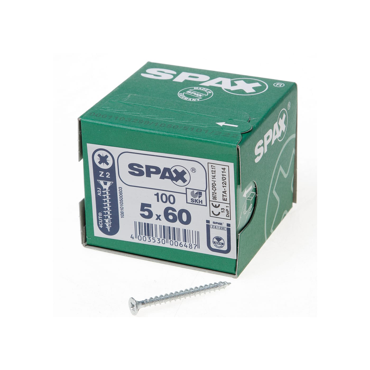 Spax Spaanplaatschroef platverzonken kop verzinkt pozidriv 5.0x60mm (per 100 stuks)
