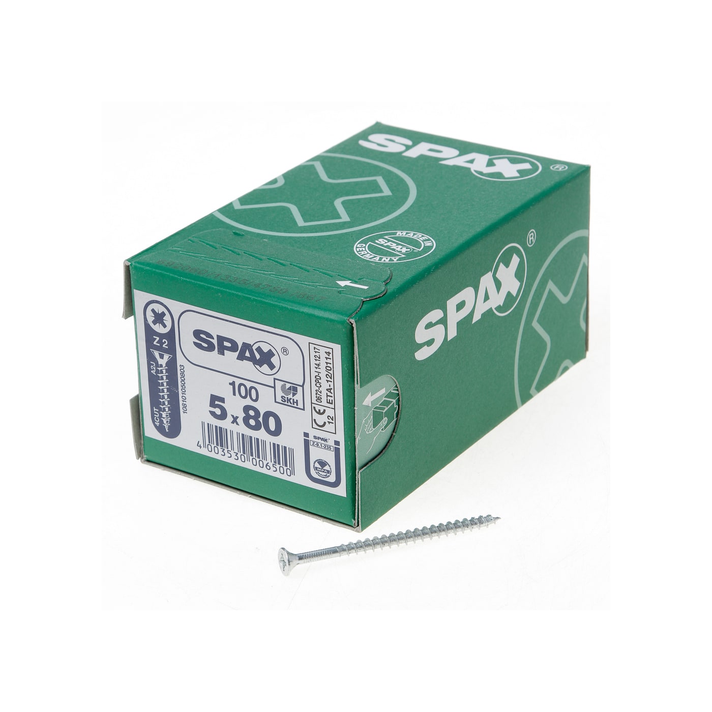 Spax Spaanplaatschroef platverzonken kop verzinkt pozidriv 5.0x80mm (per 100 stuks)