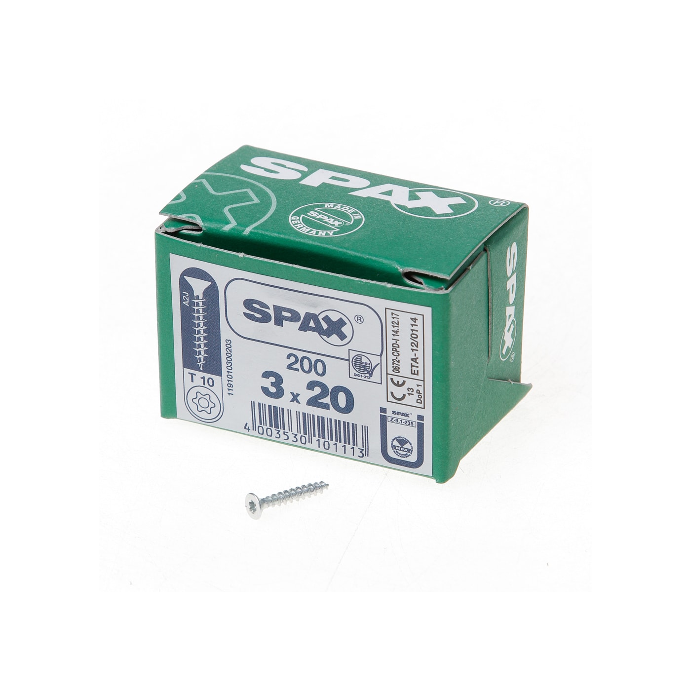 Spax Spaanplaatschroef platverzonken kop verzinkt T-Star T10 3.0x20mm (per 200 stuks)