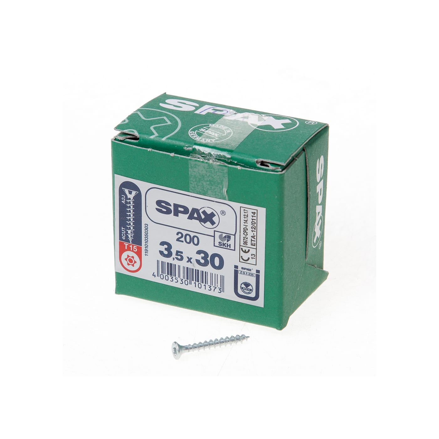 Spax Spaanplaatschroef platverzonken kop verzinkt T-Star T15 3.5x30mm (per 200 stuks)