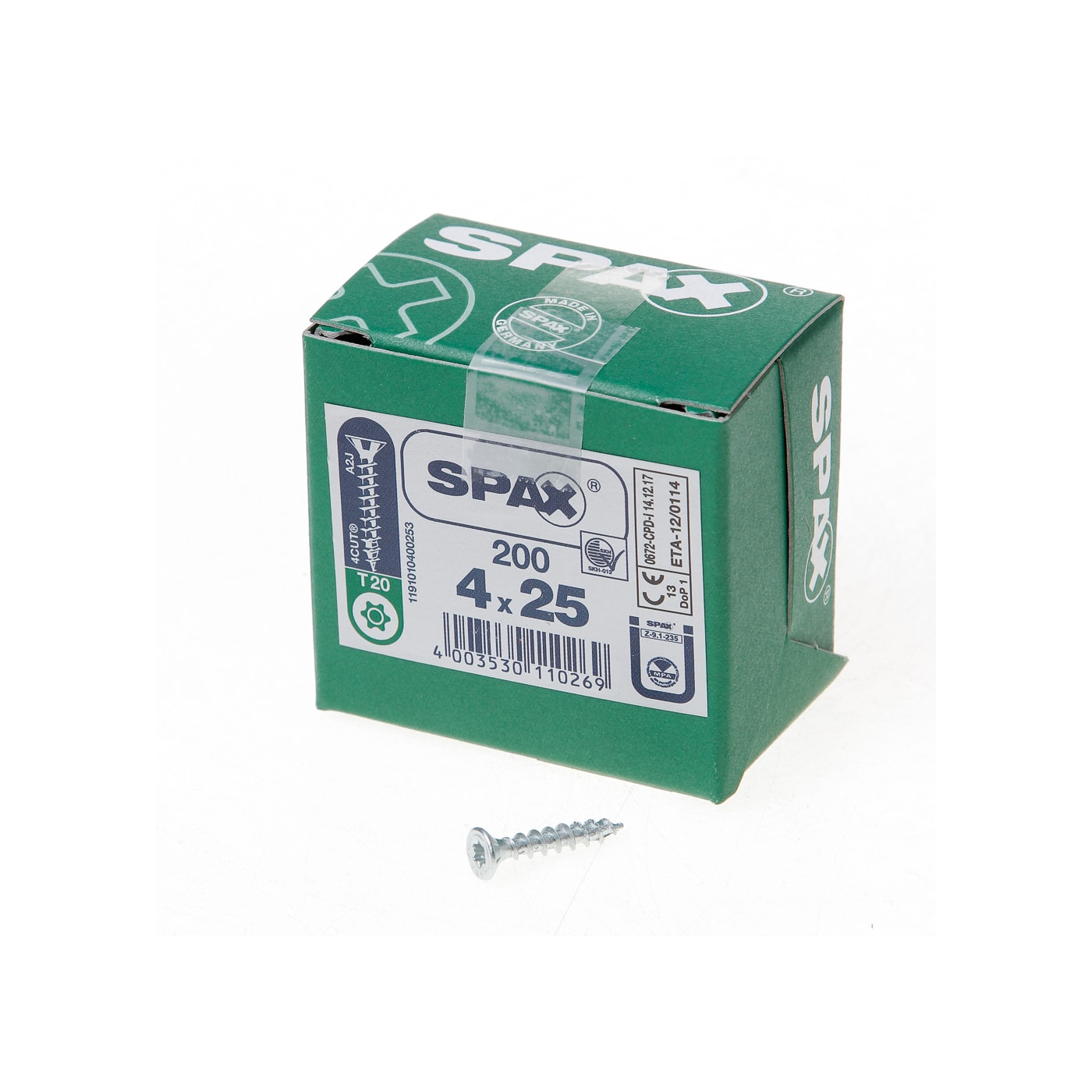 Spax Spaanplaatschroef platverzonken kop verzinkt T-Star T20 4.0x25mm (per 200 stuks)