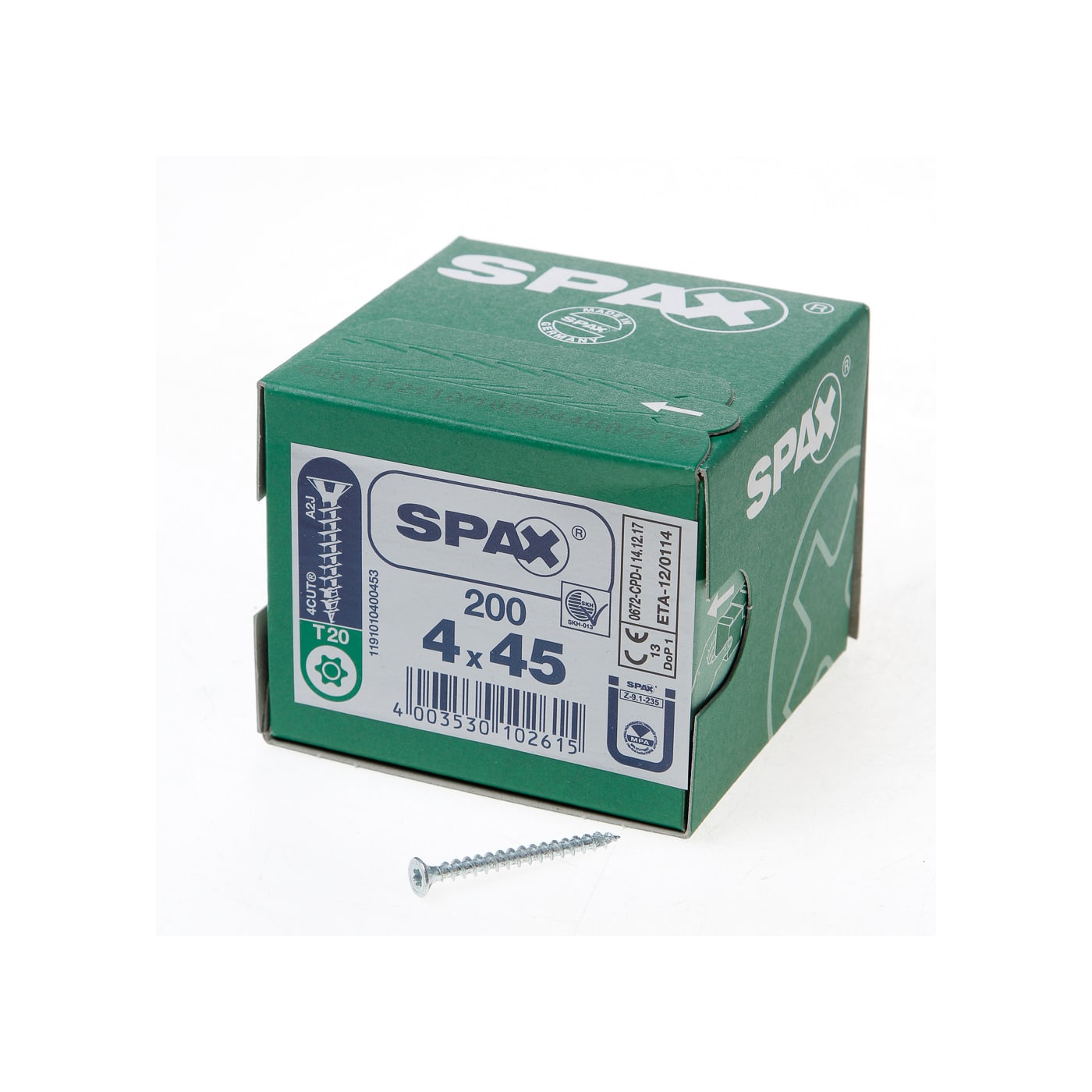 Spax Spaanplaatschroef platverzonken kop verzinkt T-Star T20 4.0x45mm (per 200 stuks)