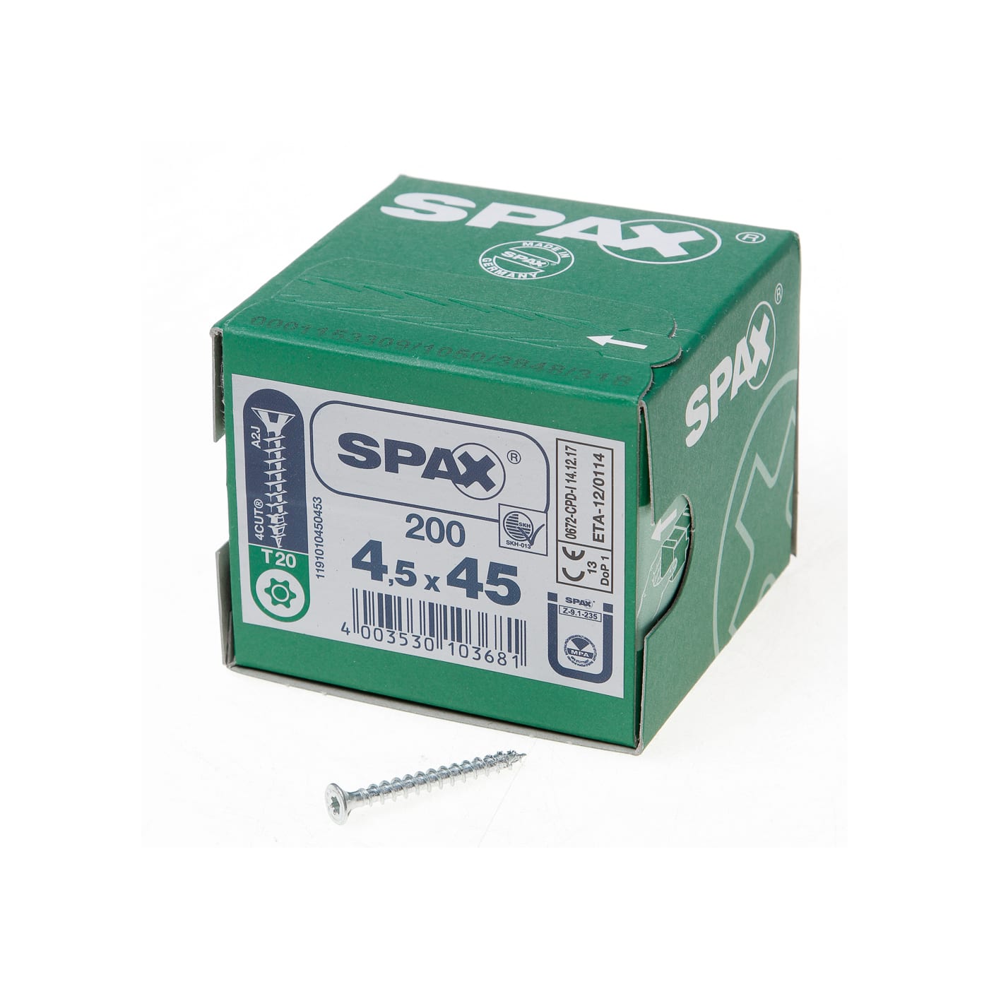 Spax Spaanplaatschroef platverzonken kop verzinkt T-Star T20 4.5x45mm (per 200 stuks)
