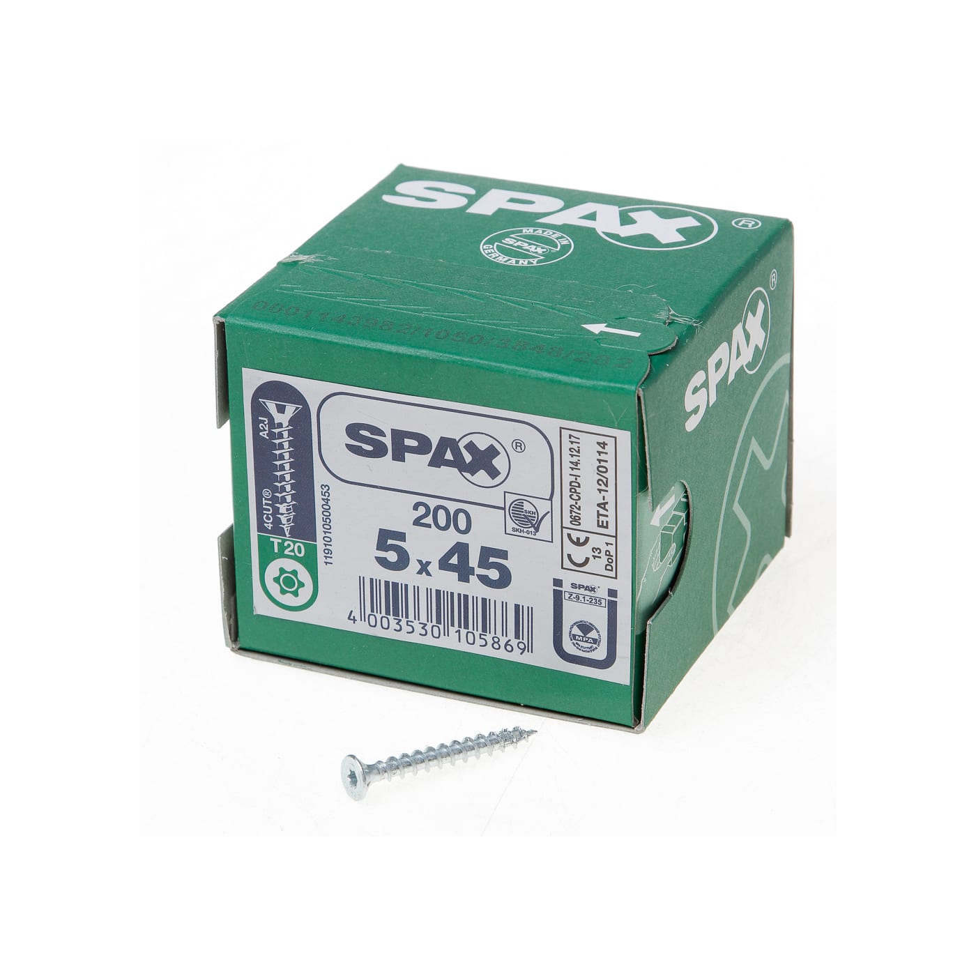 Spax Spaanplaatschroef platverzonken kop verzinkt T-Star T20 5.0x45mm (per 200 stuks)