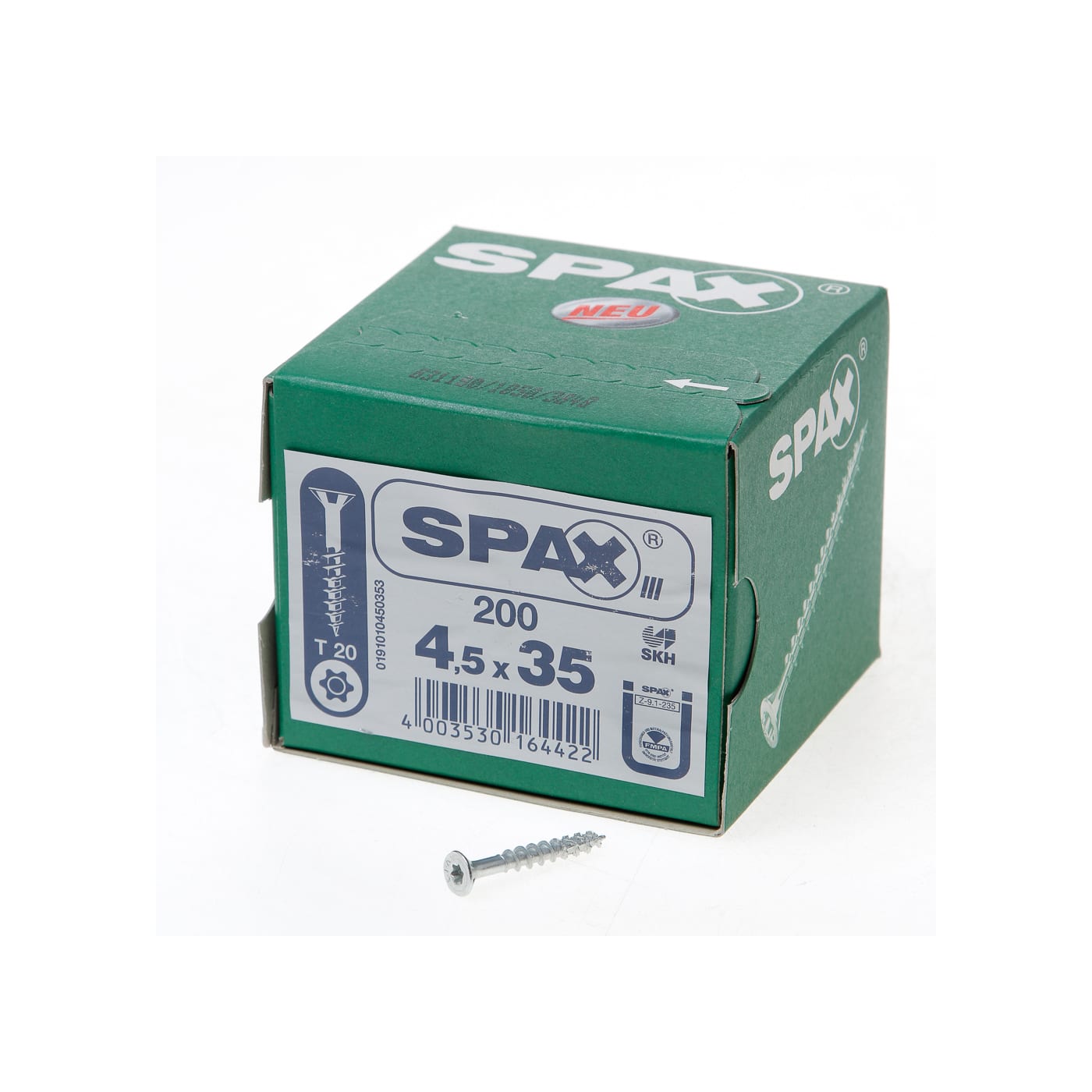 Spax Spaanplaatschroef torx T-Star T20 platverzonken kop verzinkt deeldraad 4,5x35 (200)