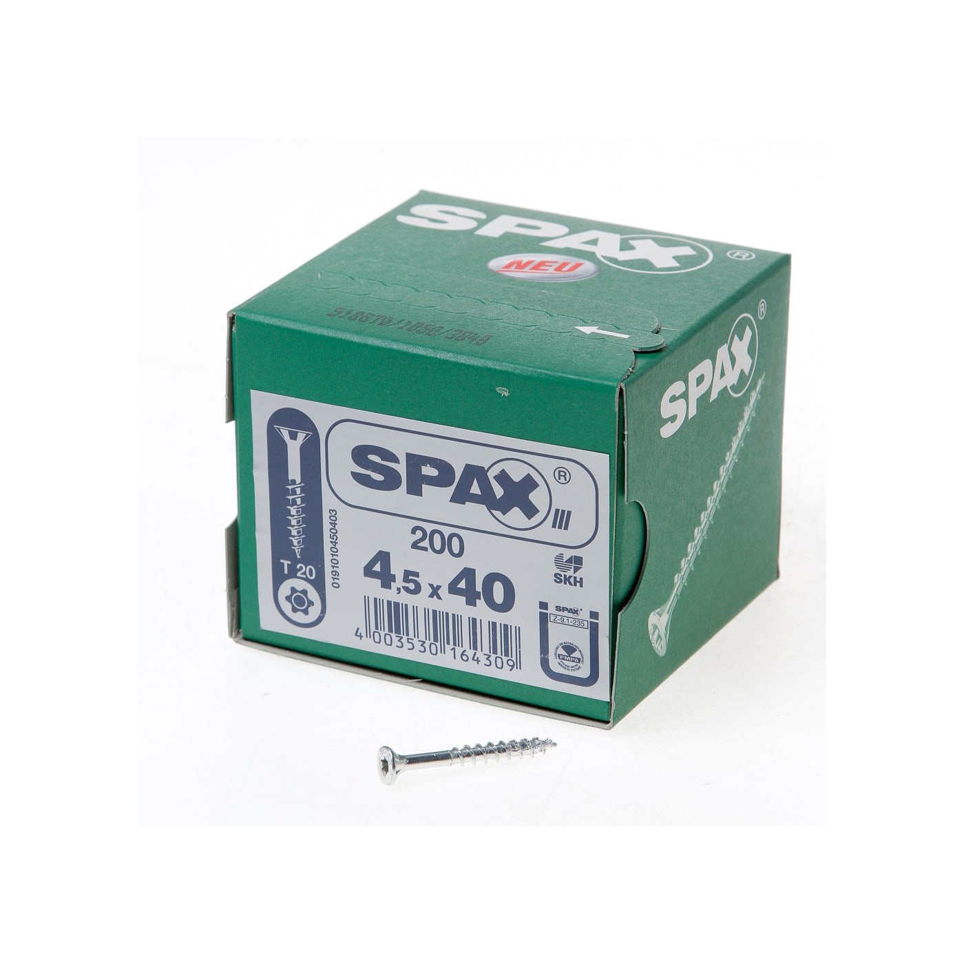 Spax Spaanplaatschroef torx T-Star T20 platverzonken kop verzinkt deeldraad 4,5x40 (200)