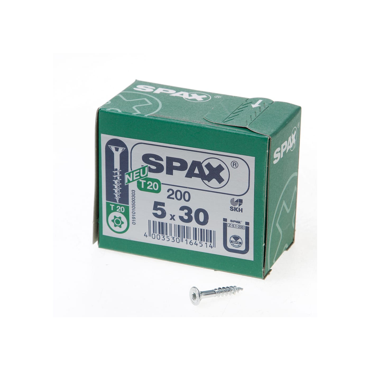 Spax Spaanplaatschroef platverzonken kop verzinkt T-Star T20 deeldraad 5.0x30mm (per 200 stuks)
