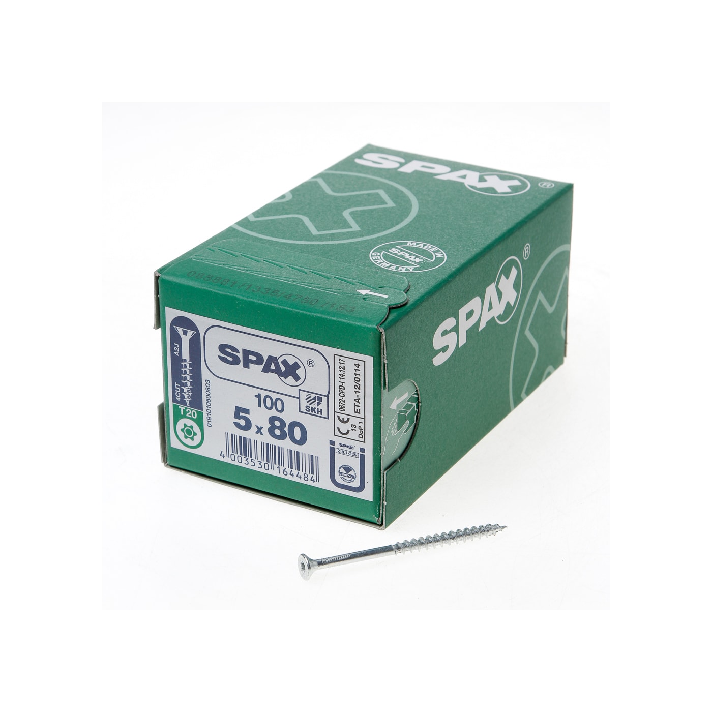 Spax Spaanplaatschroef torx T-Star T20 platverzonken kop verzinkt deeldraad 5,0x80 (100)