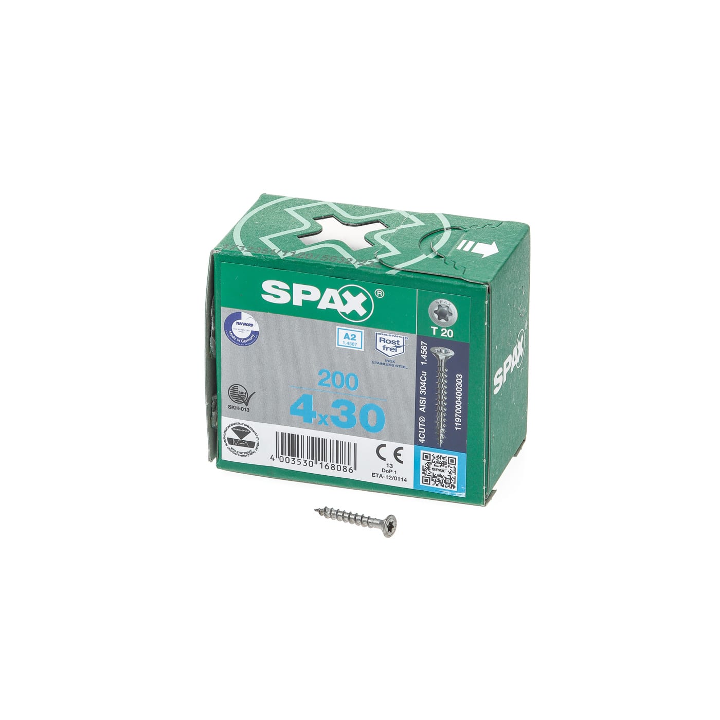 Spax Spaanplaatschroef platverzonken kop RVS T-Star T20 voldraad 4.0x30mm (per 200 stuks)