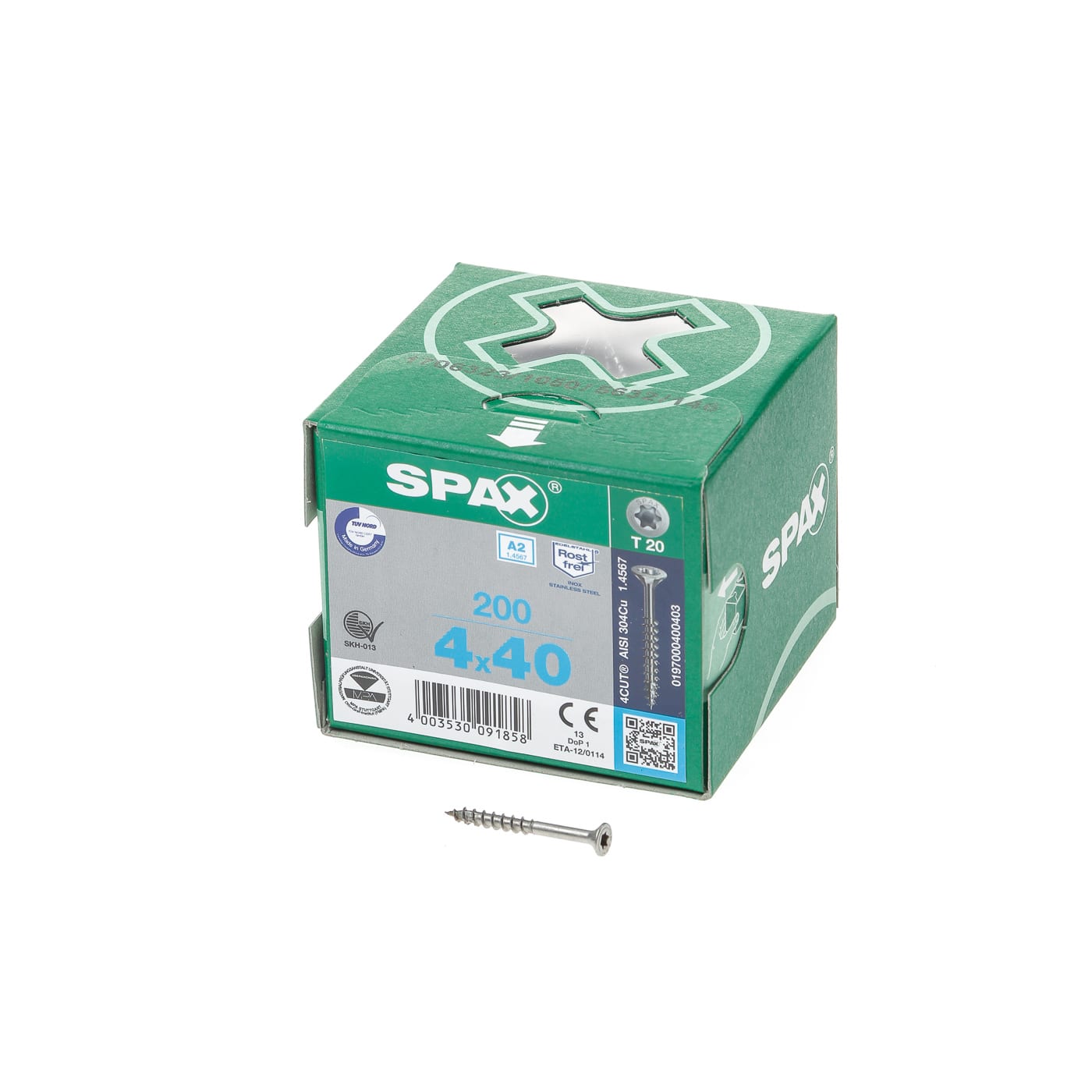 Spax Spaanplaatschroef platverzonken kop RVS T-Star T20 deeldraad 4.0x40mm (per 200 stuks)