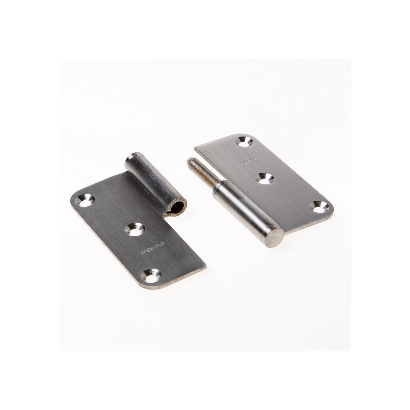 Rvs argenta paumel 89/89 afgerond, gesloten. Links of Rechts model. Gerold met inox pin en unieke gepatenteerde vastklemmende slijtringmateriaal: rvsafwerking: geborstelde rvs
