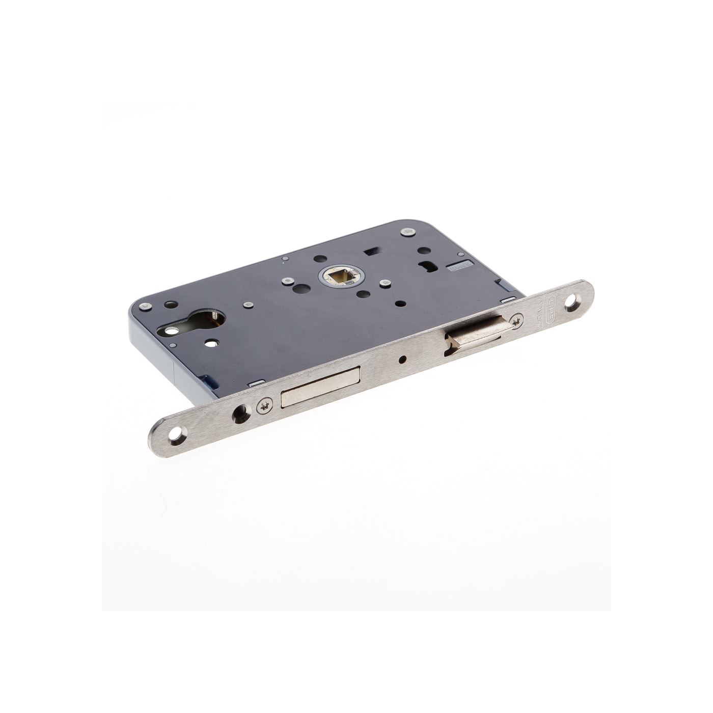 Toepassingen: Voor binnendeuren, cilinderslot met dag- en nachtschoot.Voordelen: ·gesloten slotkast·uniforme slotkastafmeting·dagschoot omkeerbaar in gemonteerde toestand·voor links- en rechtsdraaiende deuren·maximale ondersteuning krukstift voor spelingvrije beslagmontage·zware tuimelaarveer, getest op 500.000 bedieningenSpecificaties: Cilinder dag- en nachtslot met rechthoekige of afgeronde voorplaat in RVS of gelakt. Gelakte slotkast. Voor 17 mm europrofiel cilinder, afstand 72 mm en doornmaat 50, 55, 60, 65 of 70 mm.·omkeerbare dagschoot.