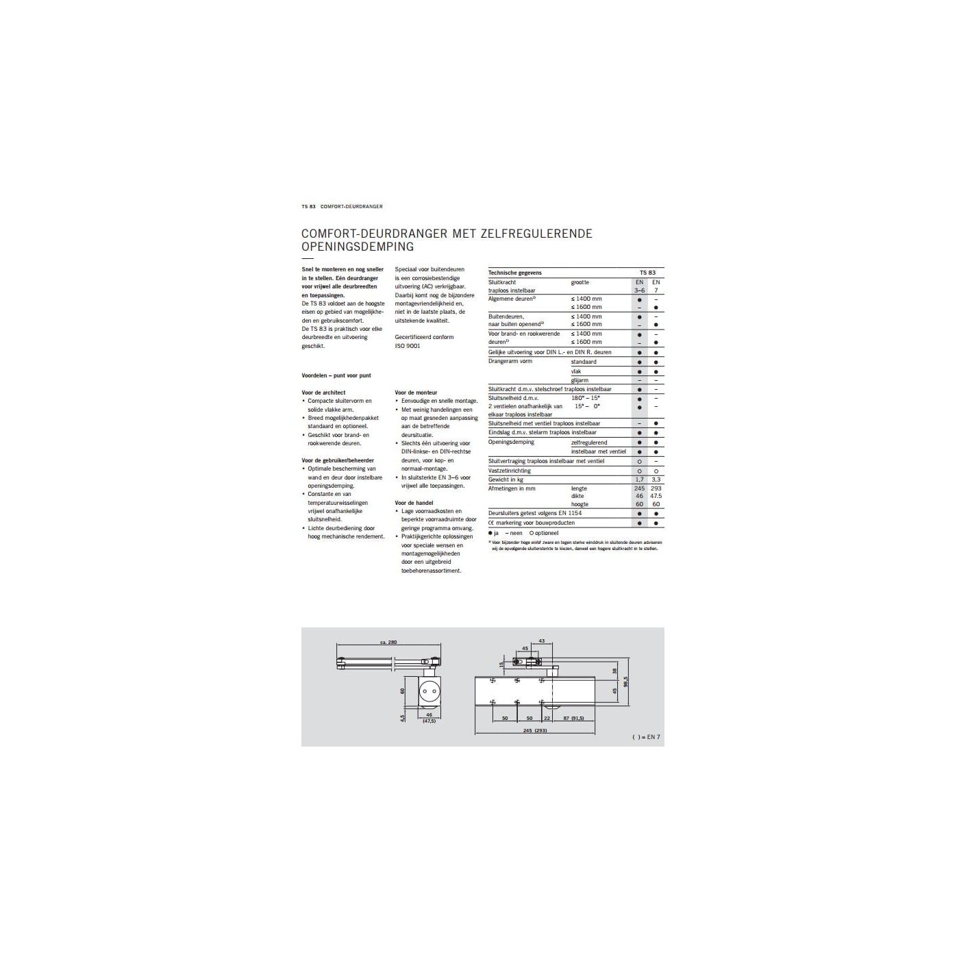 De TS 83 is geschikt voor enkele en dubbele deuren en is eenvoudig te installeren.
