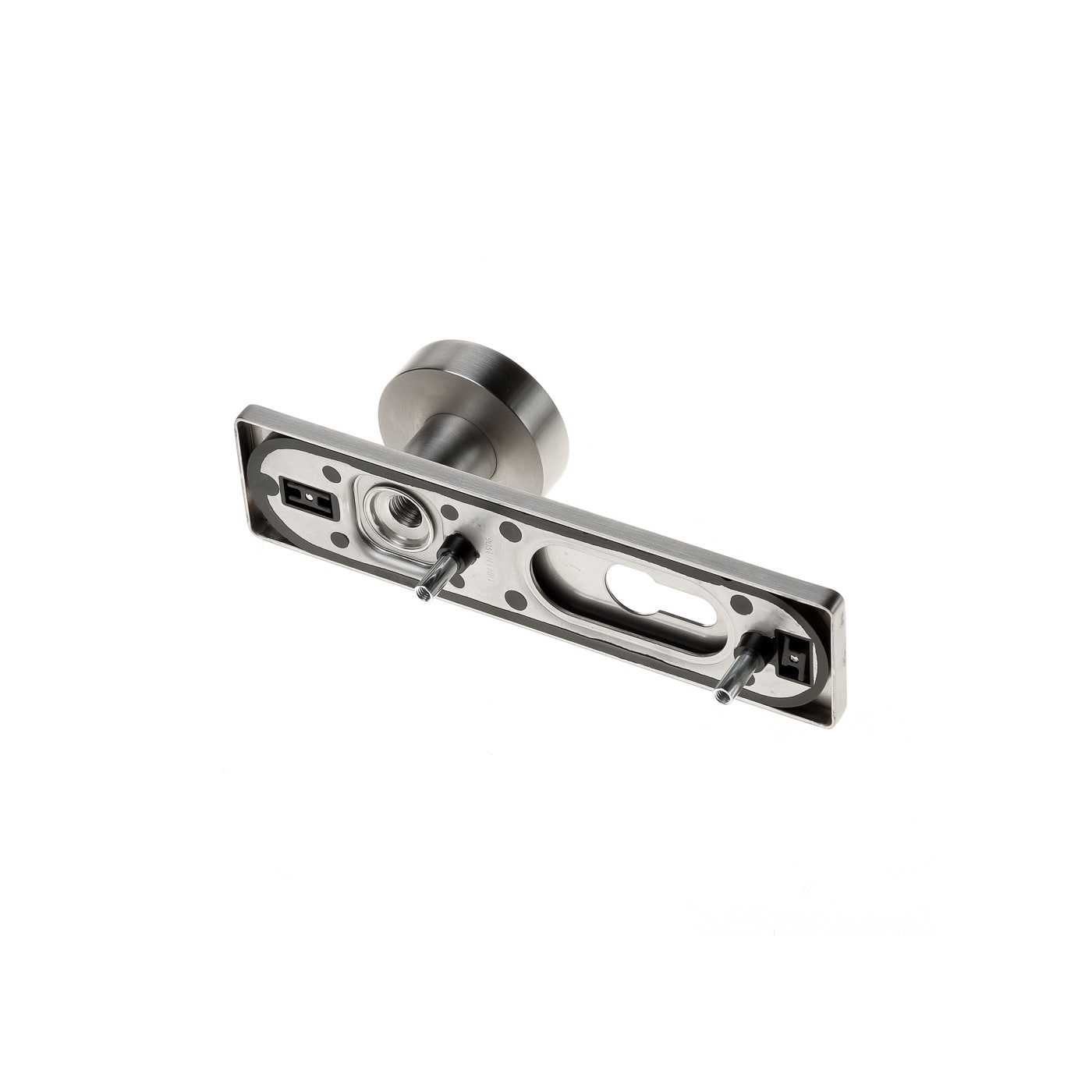 Deze garnituren van EN 1906 Klasse 4, zijn geveerd / vastdraaibaar en zijn leverbaar in diverse modellen deurkrukken. Dit kan moduliair gecombineerd worden met ronde óf vierkante rozetten, op kort- én langschilden (ovaal en rechthoekig). Alles in aluminium F1 óf roestvaststaal (messing en brons op aanvraag). Door de lossen bevestigingssets kan men kiezen tussen deurdikte 39-58mm óf 59-78mm.