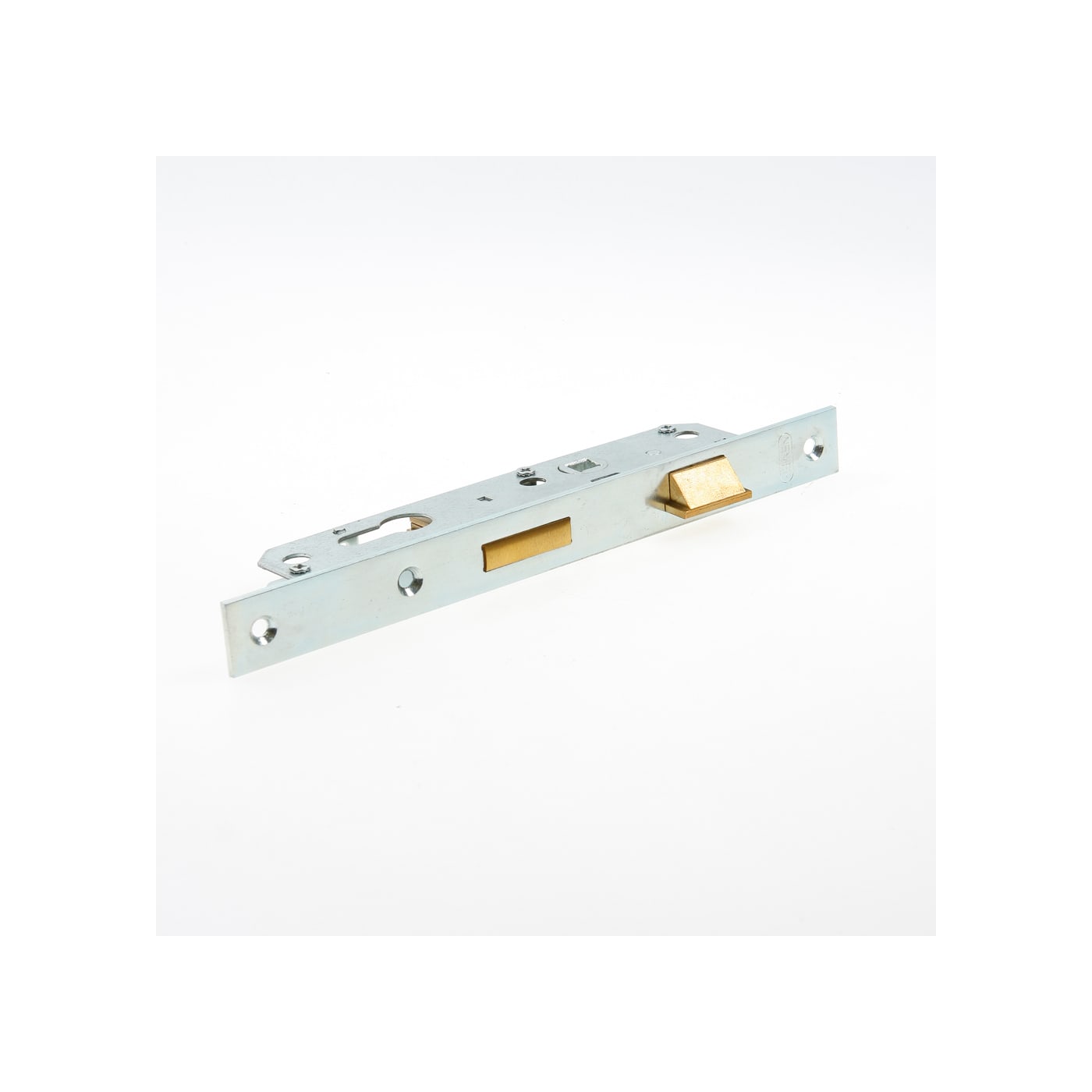 Insteek smaldeurslot, met wissel, één toers, links en rechts verschillend, krukgat 8 mm, kruk-/cilindergat h.o.h. 72 mm, voorplaat 245x24 mm, open verzinkte kast met een hoogte van 199 mm en een dikte van 16 mm, met gaten voor patentrozetten, voor europrofielcilinder.