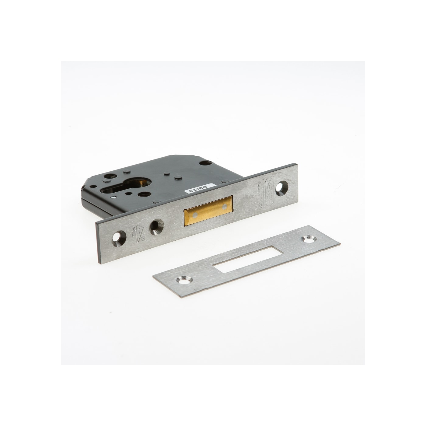 Extra zwaar insteekslot, één toers 20 mm messing nachtschoot met 2 stalen beveiligingspennen, rvs voorplaat van 140x25x4 mm, staal gelakte kast, voor europrofielcilinder.