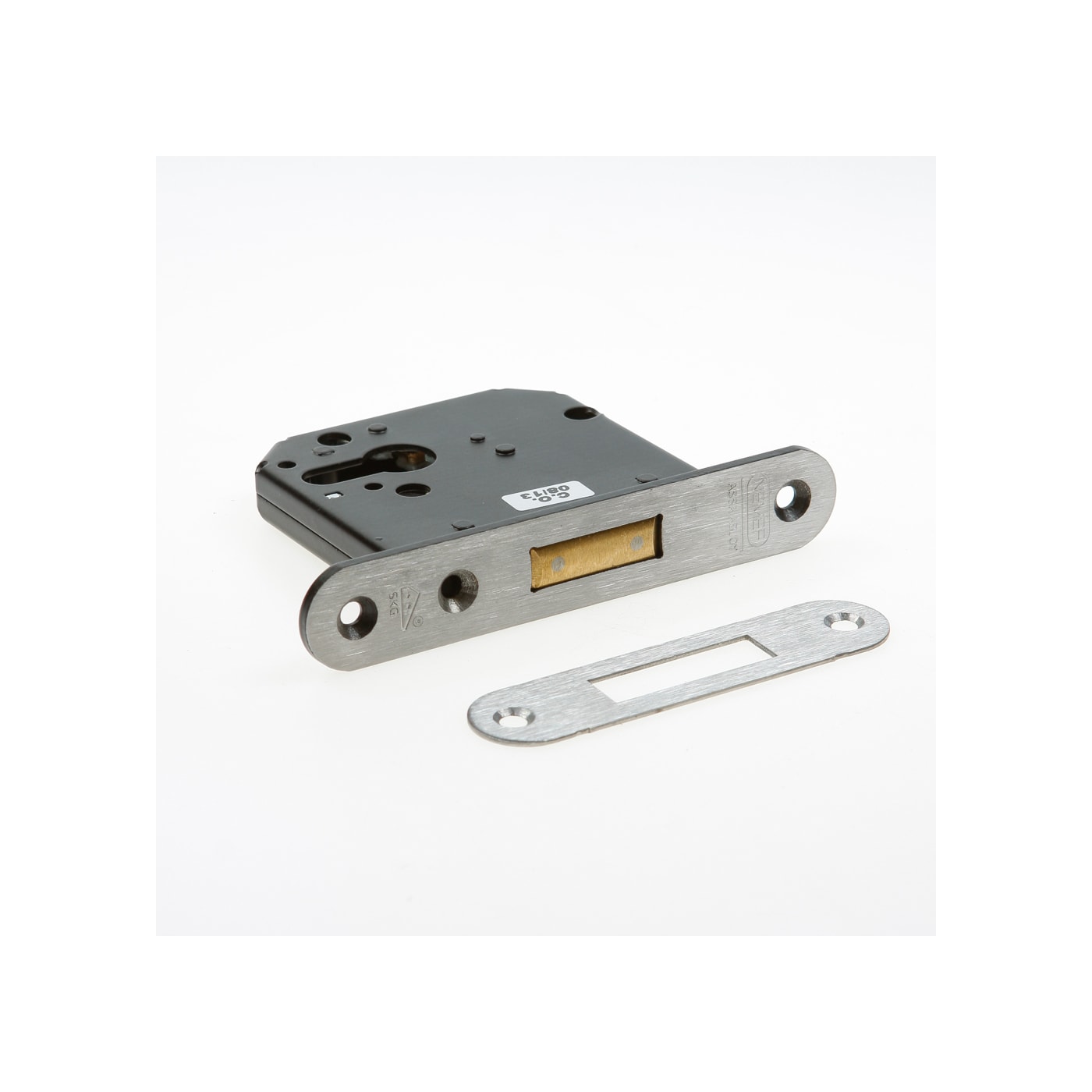 Extra zwaar insteekslot, één toers 20 mm messing nachtschoot met 2 stalen beveiligingspennen, rvs voorplaat van 140x25x4 mm, staal gelakte kast, voor europrofielcilinder.