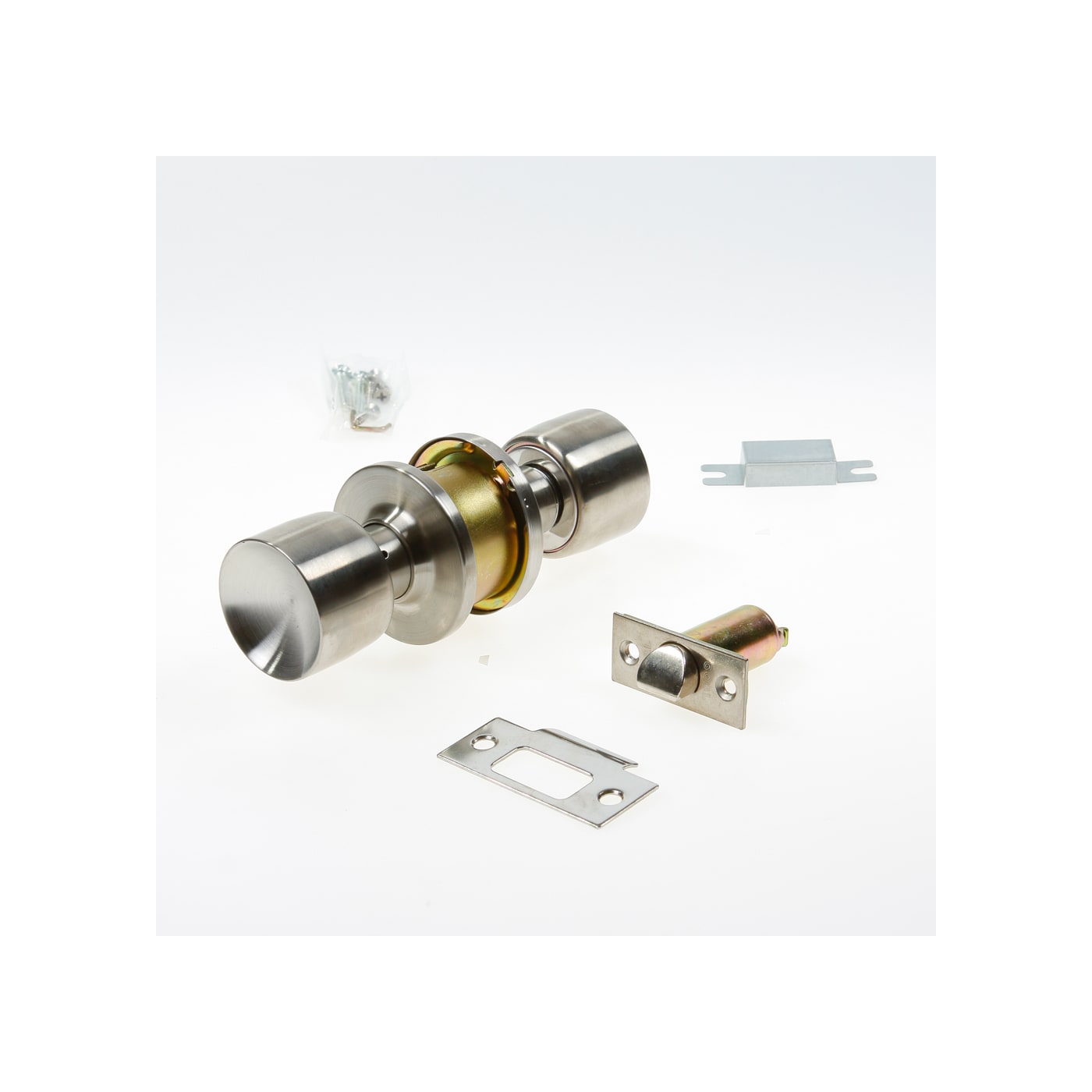 Rvs. Aan beide zijden met knop. Beide knoppen steeds vrij draaibaar. Doornmaat 70 mm. Deurdikte 30-45 mm.