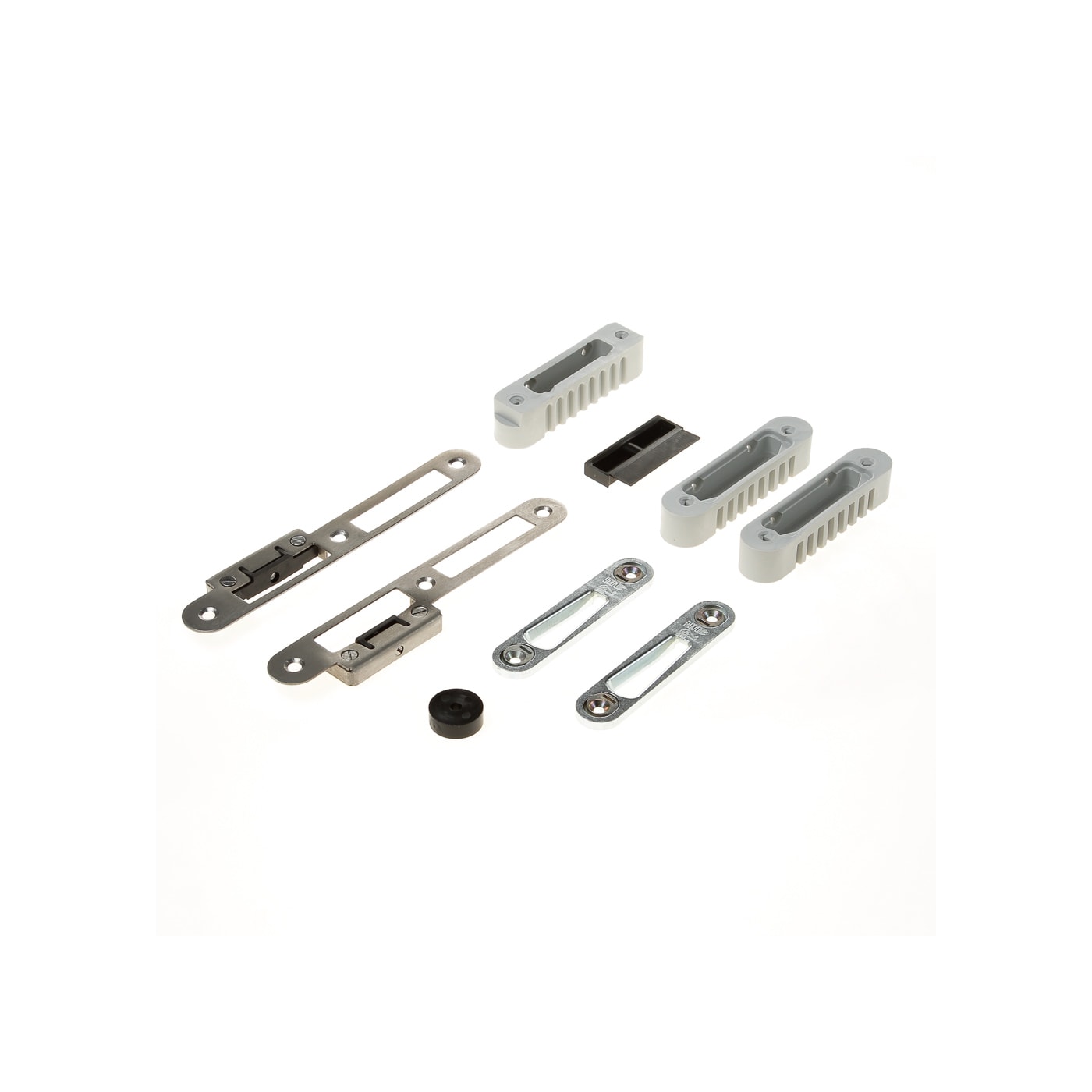 Deuren zwellen en krimpen onder invloed van wisselende luchtvochtigheid. Hierdoor komt het voor dat de deur soms te ruim en soms heel moeilijk sluit.Met behulp van de nastelbare sluitplaten van HMB is dit probleem verleden tijd. Tevens voldoen de sluitplaten in gevelelementen aan de strengste eisen volgens NEN 5096 en inbraakwerendheidsklasse 3.Deze sluiplaat is traploos nastelbaar. Dat wil zeggen dat deze bij een gesloten deur aan de voorzijde is af te stellen.U hoeft alleen het boutje te verstellen totdat het blokje tegen de dagschoot van het slot komt. Hierdoor zijn moeilijk sluitende of rammelende deuren verleden tijd.Ook is in de dagschootsparing een oploopblok aangebracht. Dit zorgt ervoor dat de dagschoot van het slot eenvoudig en geruisloos naar binnen wordt geleid.Door de unieke maatvoering is de sluitplaat universeel en bij vrijwel alle insteeksloten en meerpuntssluitingen toepasbaar.Vanwege de robuuste RVS uitvoering is de sluitplaat uitermate geschikt voor plaatsing binnen en buiten.De sluitplaten zijn er in een uitvoering met korte en lange lip.Mocht een andere maat lip nodig zijn dan kunnen ze voorzien worden van kunststof verlengblokjes van 4, 8, 12, of 16 mm.