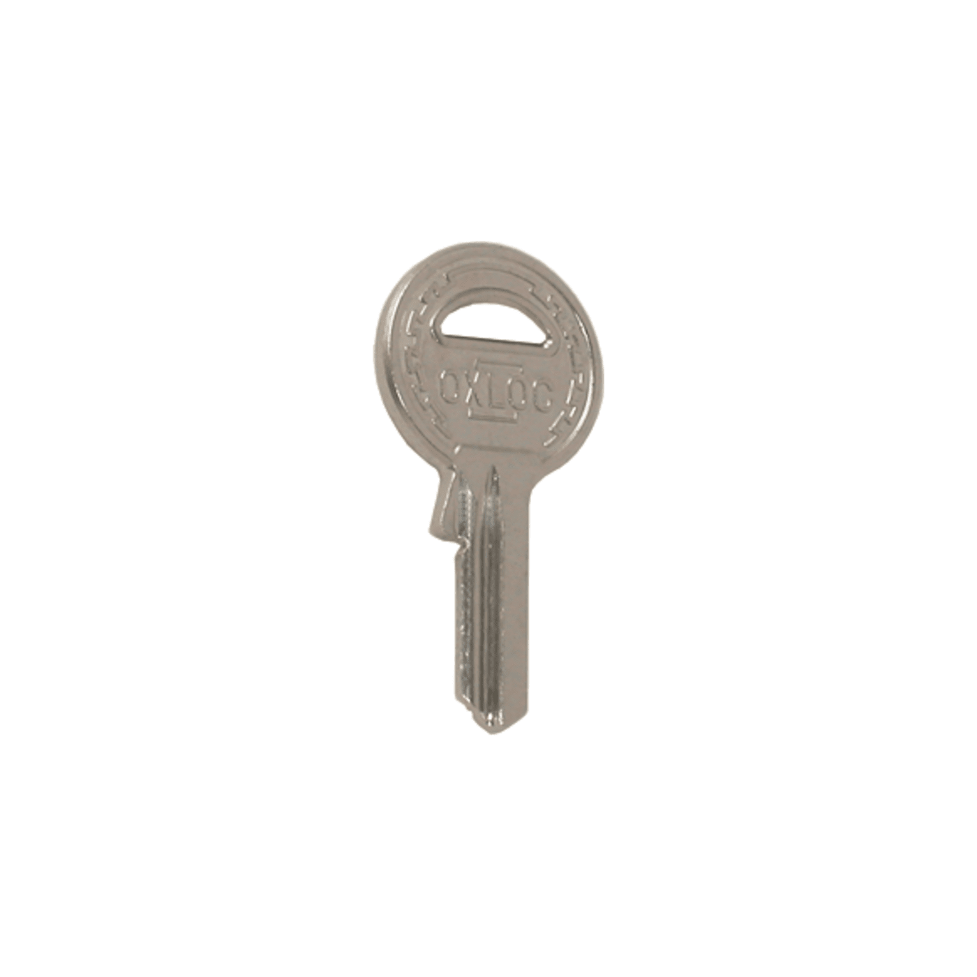 Sleutel voor cilinderhangslot. Verkrijgbaar in de maten 25mm, 30mm, 40mm en 50mm.