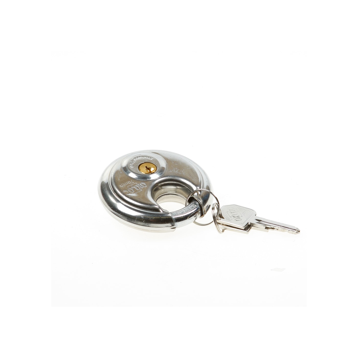 Rvs AISI 304 (A2), met messing cilinder, boorbelemmering en gehard stalen beugel. Inclusief 2 sleutels.