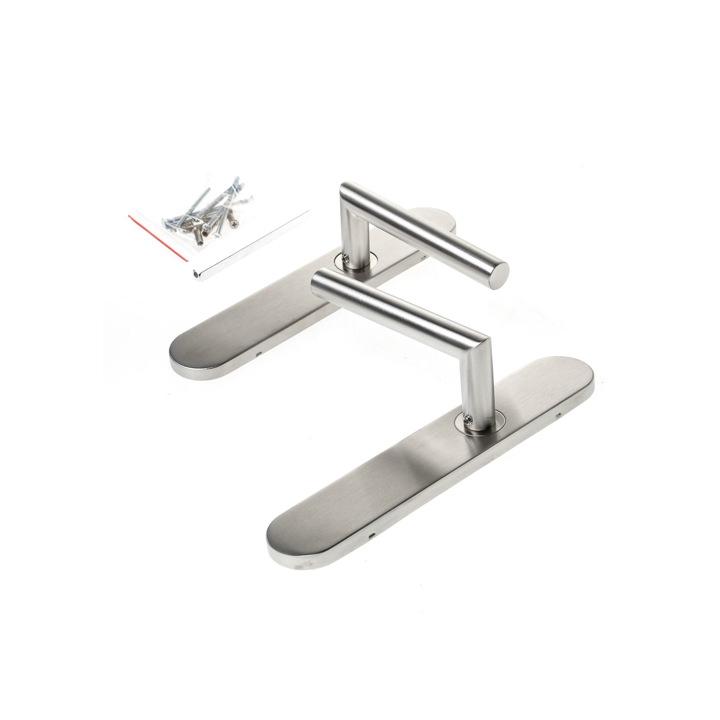 Deurkrukgarnituur, L-model deurkruk, op schilden, roestvaststaal, blind, geschikt voor deurdikte 37-56mm