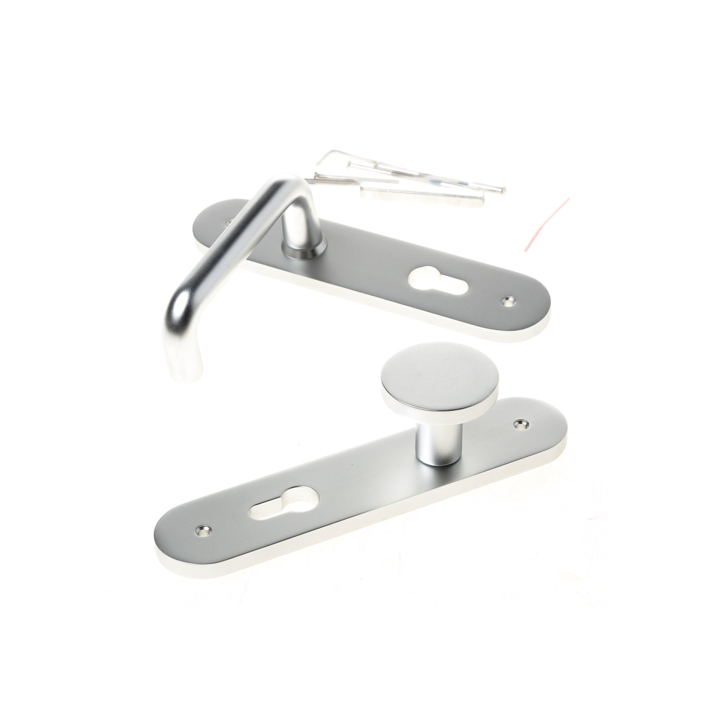 Knop-/krukgarnituur aluminium op schild 45x210mm, D-model F1 afgerond model PC72 RS