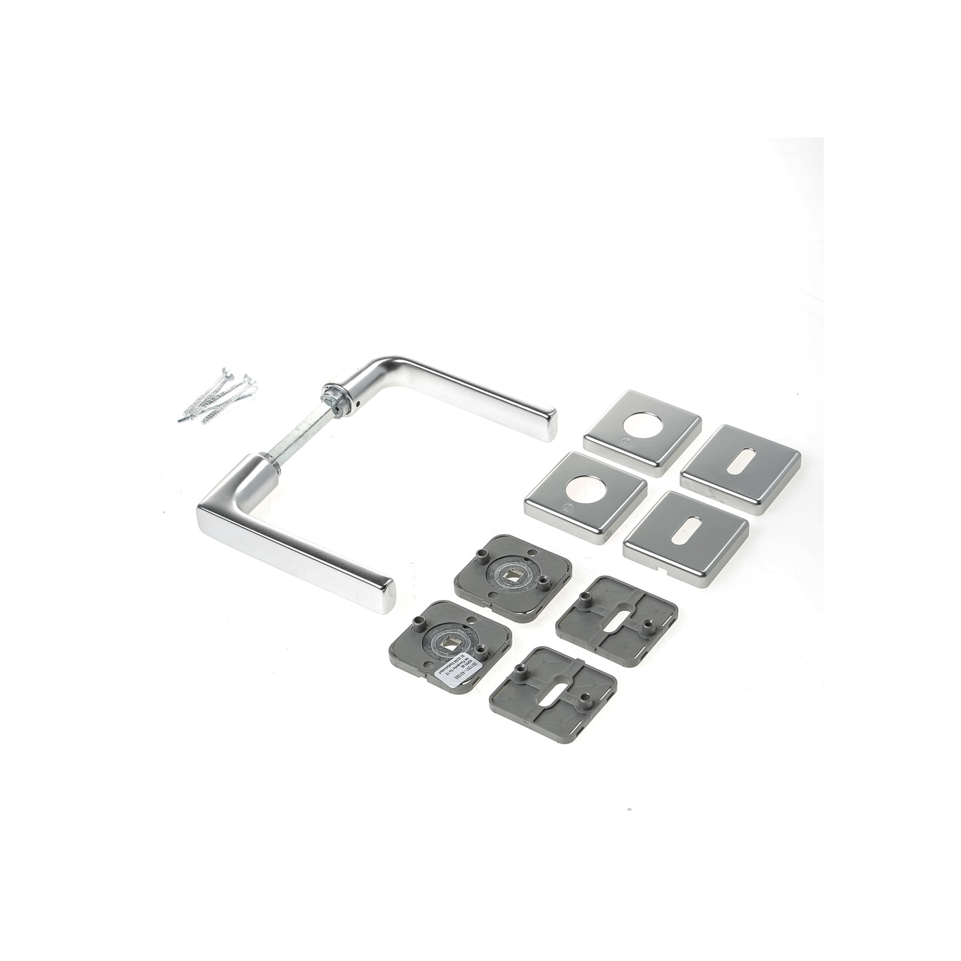 HOPPE deurkrukgarnituur met HOPPE-snelstiftverbinding, rozetten met kunststof onderconstructie, krukveer en steunnokken, onzichtbare, doorgaande bevestiging met zelfsnijdende schroeven.