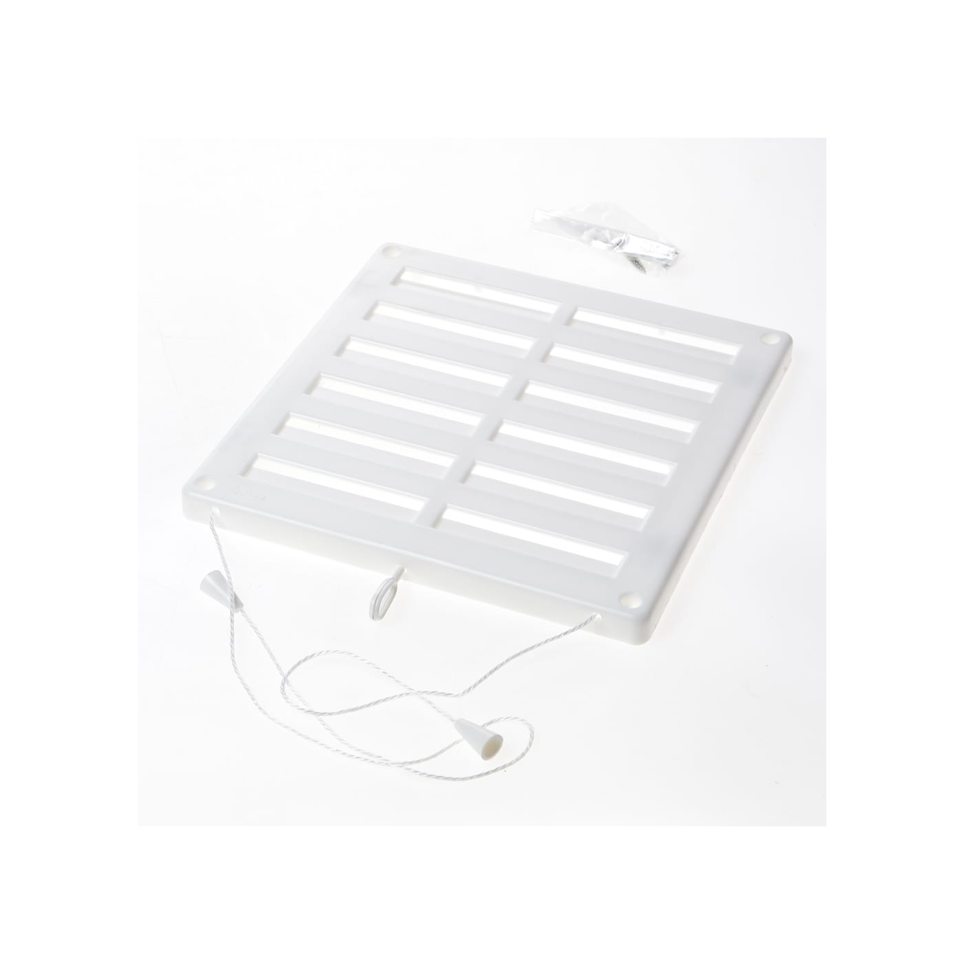 Kunststof schuifroosters met koord en haak, inclusief schroeven.