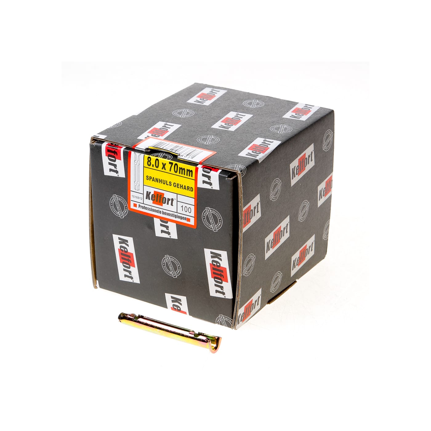 Geel verzinkt. Spanhuls voor lichtgewicht verankeringen in beton en massief metselwerk. · Bij het inslaan van de Spanhuls spant deze zich over de gehele montagediepte tegen de boorgatwand. · De kraag houdt het aanbouwdeel stevig op zijn plaats