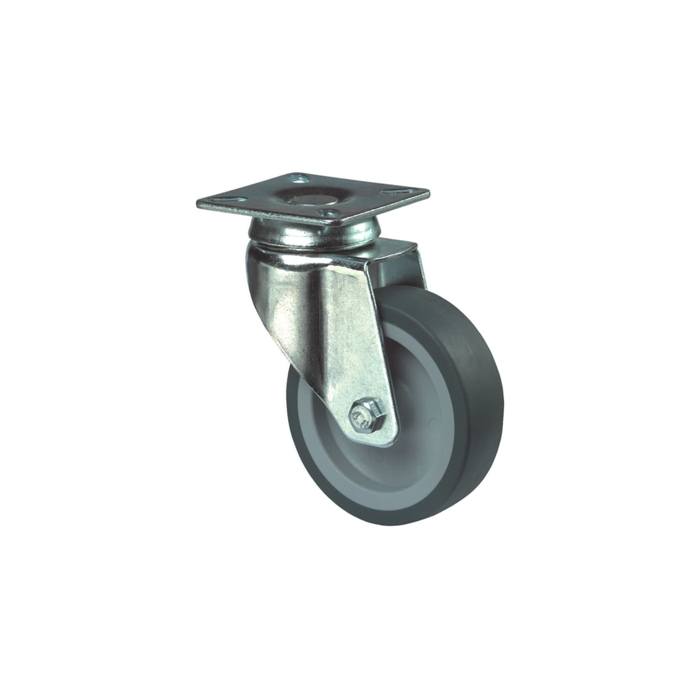 Elektrolytisch verzinkt met plaat. Blauw/grijs rubber wiel met glijlager.