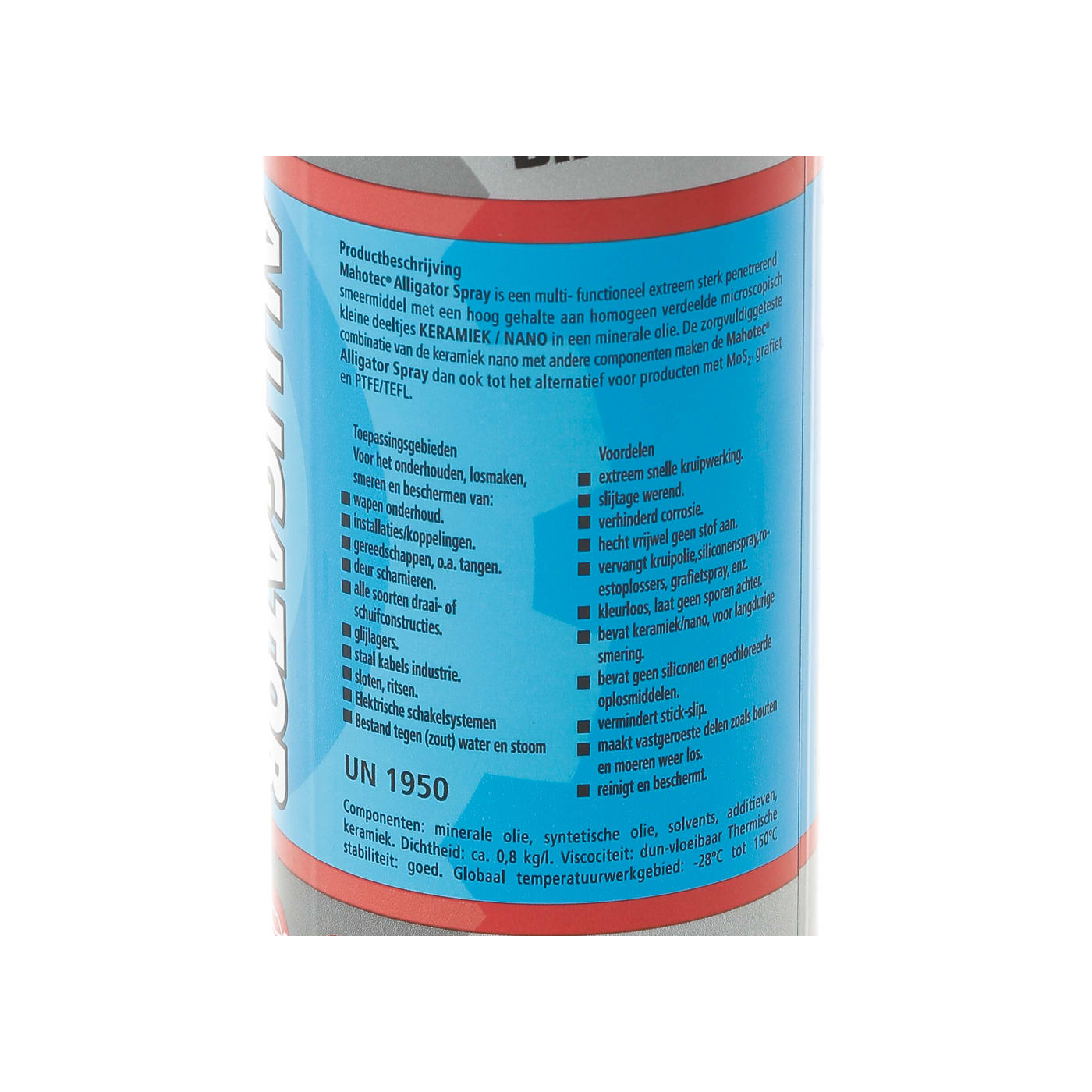 * Roestwerend.* Voor het losmaken, onderhouden, smeren en beschermen van installaties en gereedschappen, scharnieren, sloten, lagers en alle soorten draai- en schuifconstructies.* Hoogwaardige roestoplosser die door zijn speciale samenstelling zeer snel werkt.* Beschikt over uitstekende smeereigenschappen.* Is geschikt voor het verdrijven van vocht.* Trekt vrijwel geen stof of vuil aan.* Werkt conserverend -28°C tot + 150°C.
