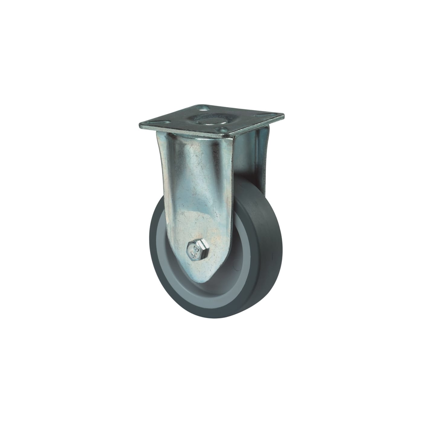 Elektrolytisch verzinkt met plaat. Blauw/grijs rubber wiel met glijlager.