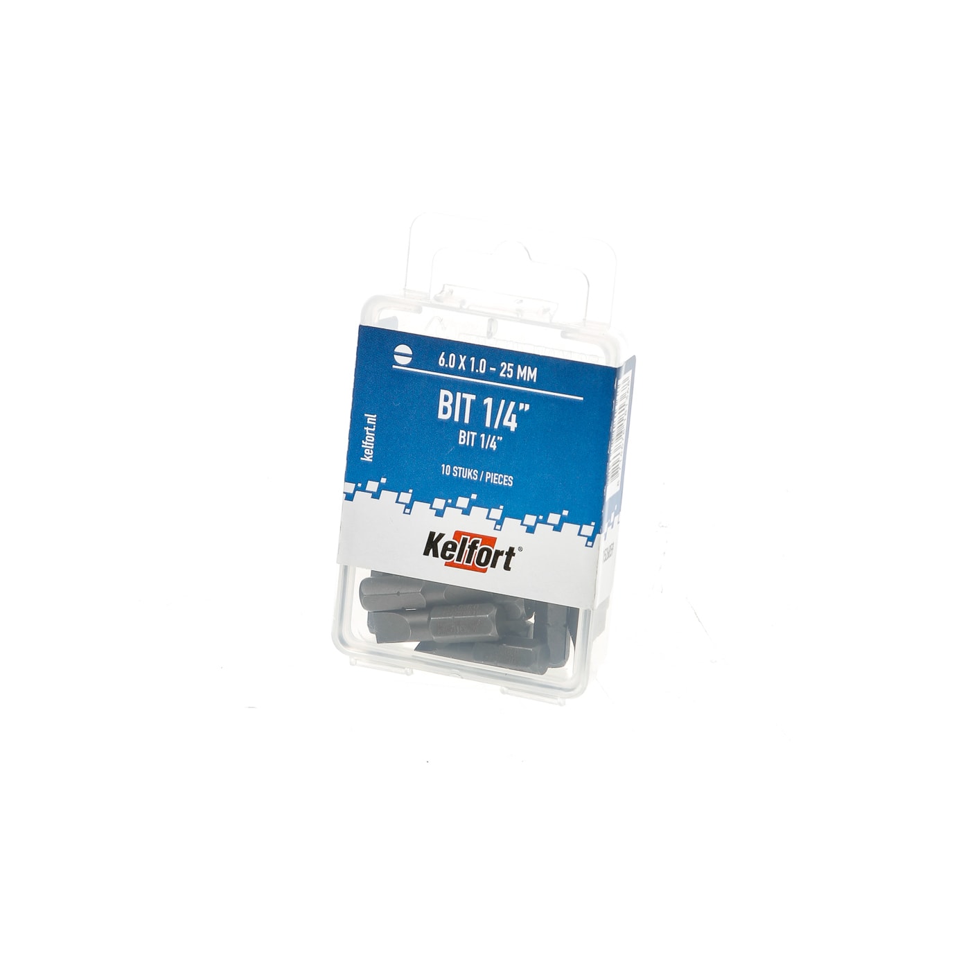 Standaard uitvoering voor schroeven met zaagsnede. Met 1/4" zeskantaansluiting. Lengte 25 mm.