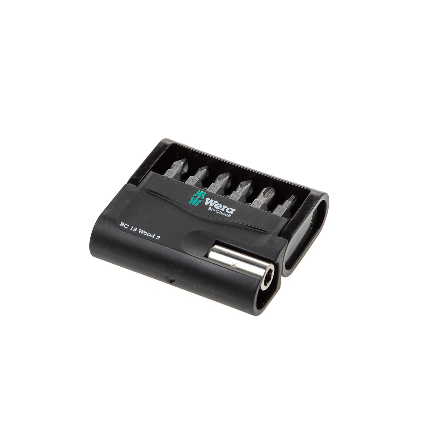 1x Bit-Check 12 Wood 2, 12-delig; 1x 899/4/1 Universele bithouder, 1/4" x 50 mm; 1x 851/1 Z Bits Phillips, PH 2 x 25 mm; 4x 855/1 Z Bits Pozidriv: PZ 1x25, 2x PZ 2x25, PZ 3x25; 6x 867/1 TORX® Bits: TX 10x25, TX 15x25, TX 20x25, TX 25x25, TX 30x25, TX 40x25