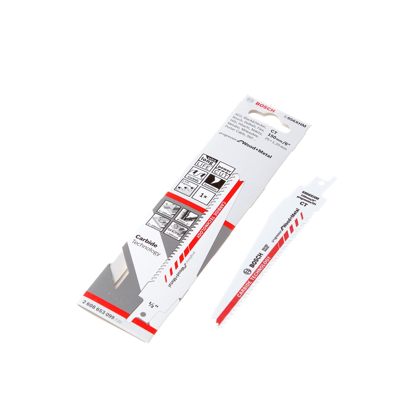 Expert 'Multi Material' zaagbladen. Gaat tot 50x langer mee bij veeleisende materialen dan een bi-metalen zaagblad.Extreme duurzaamheid dankzij Bosch Carbide Technology.Lange levensduur bij het zagen in veeleisende bouwmaterialen.Progressieve tandafstand om materiaal van elke dikte te zagen.Taps toelopende punt reikt dieper in krappe ruimtes.Dik zaagblad biedt extra robuustheid en stabiliteit.Breed lichaam voor nauwkeurige, rechte zaagsneden.Carbide TechnologyExtreme duurzaamheid is ingebouwd met Bosch Carbide Technology: het hardste metaal is in de tandstructuur geïntegreerd met behulp van geavanceerde ontwerp- en productietechnieken.Progressieve tandafstandProgressieve tandafstand om materiaal van elke dikte te zagen. Fijne tandafstand voor het zagen van dun materiaal, geleidelijk toenemende tandafstand om ook dikkere materialen effectief te zagen.Taps toelopende puntTaps toelopende punt reikt dieper in krappe ruimtes. Perfect om toegang te krijgen tot de juiste plek om de zaagsnede te beginnen.Dik materiaalDik zaagblad biedt extra robuustheid en stabiliteit. Het blijft trouw aan de beoogde zaagsnede, om nauwkeurig te kunnen werken bij zware toepassingen.Breed lichaamBreed lichaam voor nauwkeurige, rechte zaagsneden. Dit nauwkeurige zaagblad zaagt dwars door materiaal en volgt beoogde lijn en gewenste hoek.