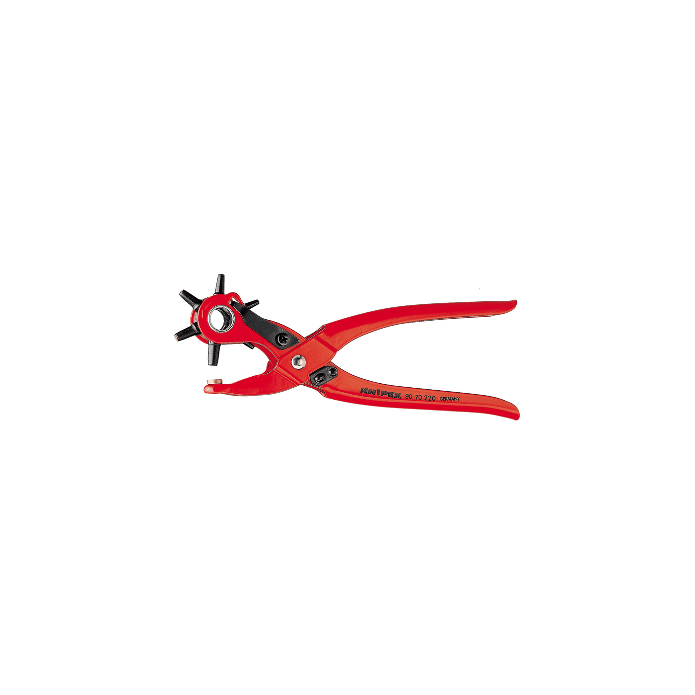 Voor het maken van gaten in leer, textiel en kunststof. Met 6 verwisselbare ponspijpjes, Ø 2,0/2,5/3,0/3,5/4,0/5,0 mm. Met openingsveer en vergrendeling. Poedergelakt voor goede bescherming tegen roest. Lichaam: uit hoogvaste staalplaat