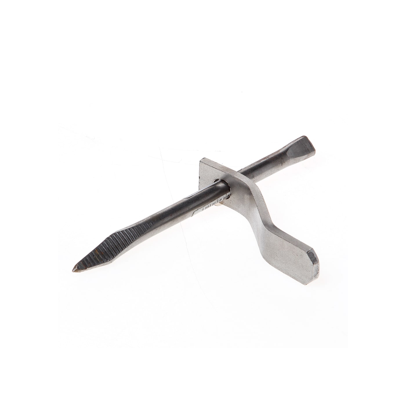 Doorsnede van de haak is halve maan, zodat de klem niet kan draaien op de slagpen.