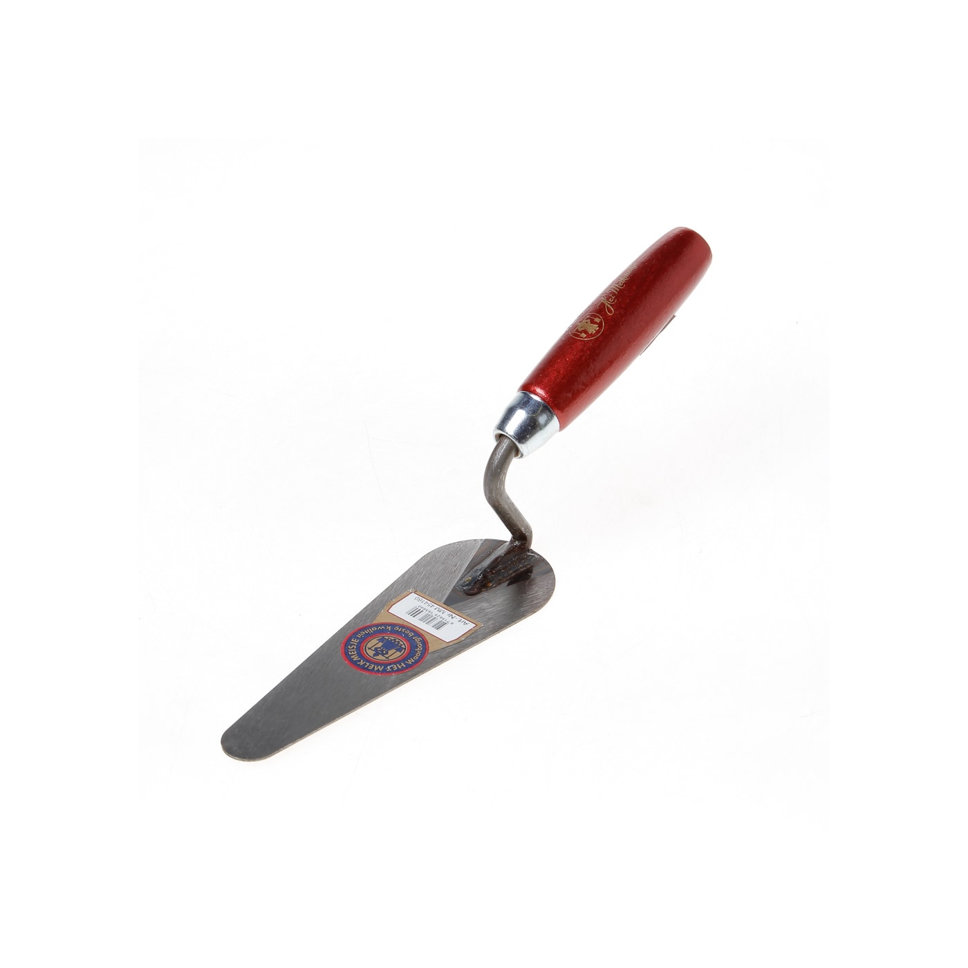 Kattentong troffel met een rood gelakt houten handvat.