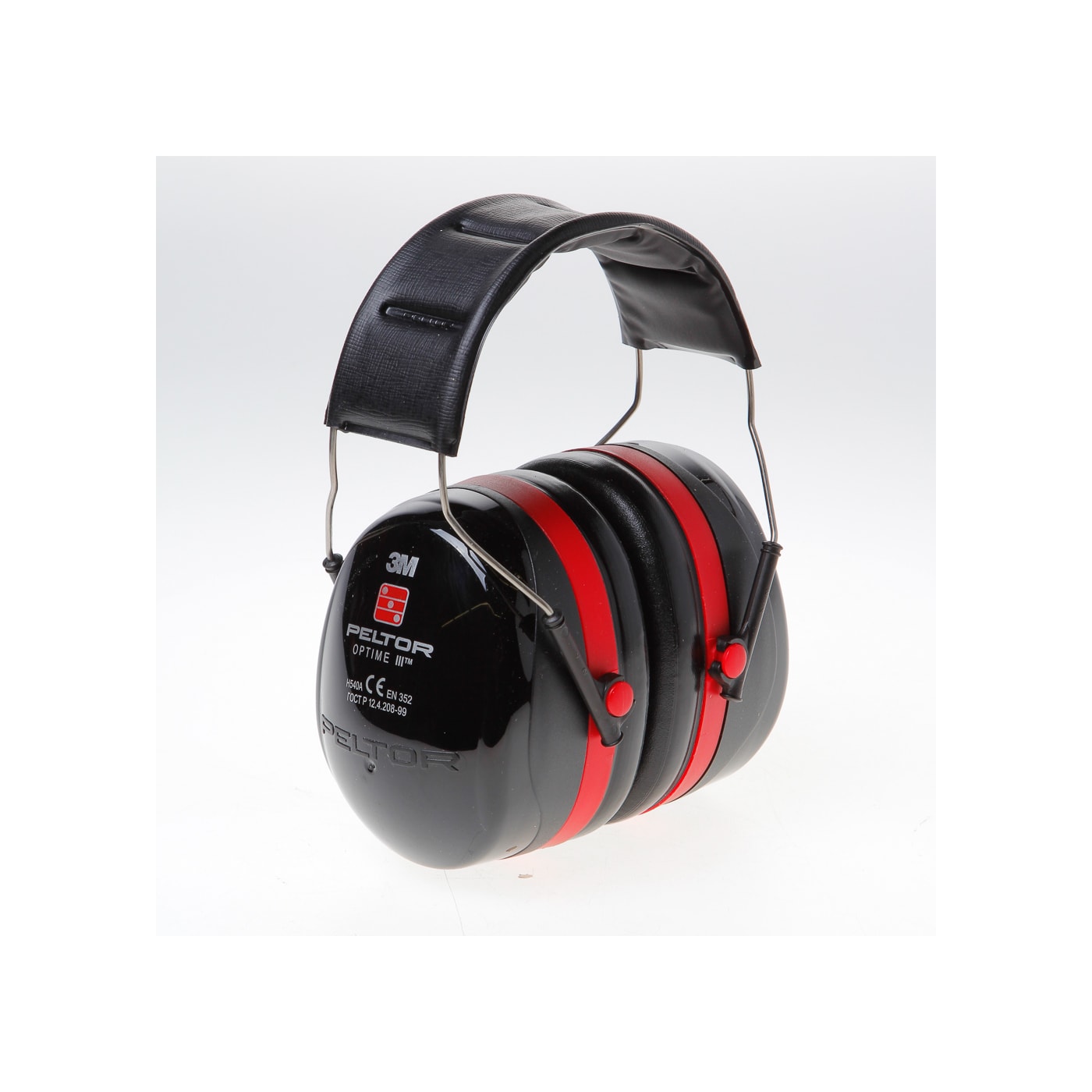 Model Optime III. Zwart/rood, kunststof, met ergonomische vormgeving. Bescherming tegen lawaai van compressoren en pneumatisch gereedschap. Geschikt voor algemene industriële toepassingen. Conform EN 352-1, EN 352-3 (SNR 35 dB). Gewicht 265 g.