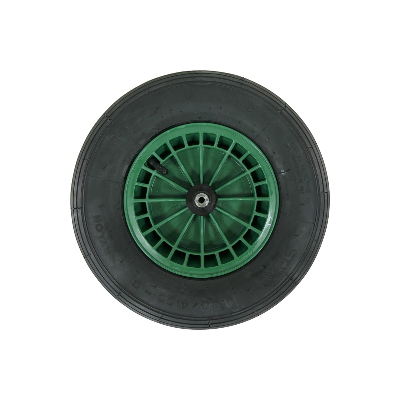 Kruiwagenwiel 400x100mm met 2PLy luchtband en as van 130mm tbv kruiwagens met één wiel. kunststof velg met hoogwaardige UV-stabilisator, verkleurt niet in de zon.PAK-vrij en REACH-gecertificeerdmax. draagkracht: 150 kgluchtbandwiel zonder binnenbandvetgesmeerde naaldlagereenvoudig te monteren