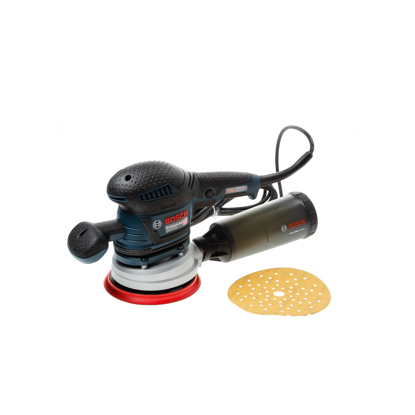 - De GEX 40-150 is ook voorzien van een stofbox met een microfilter, een schuurzool van 150 mm met klithechting voor het bevestigen van schuurbladen, toerentalinstelling en Vibration Control.